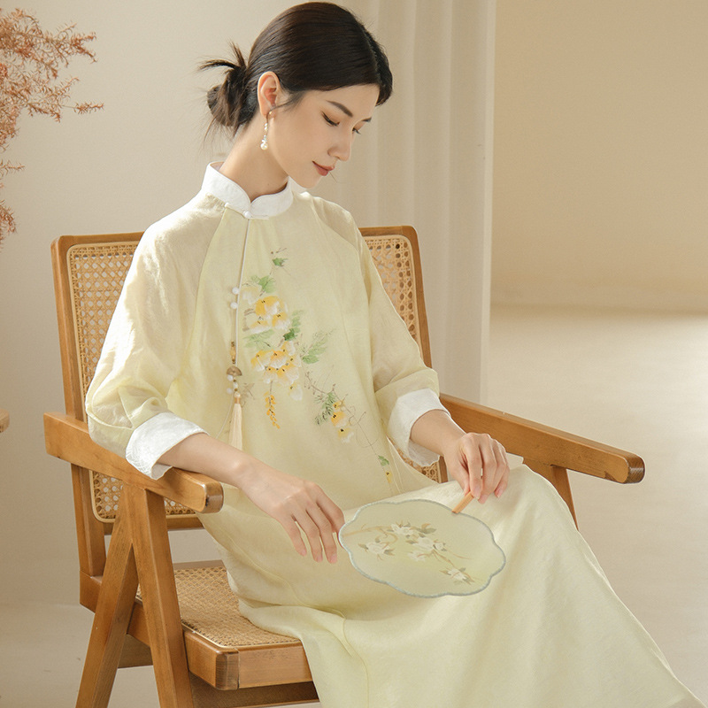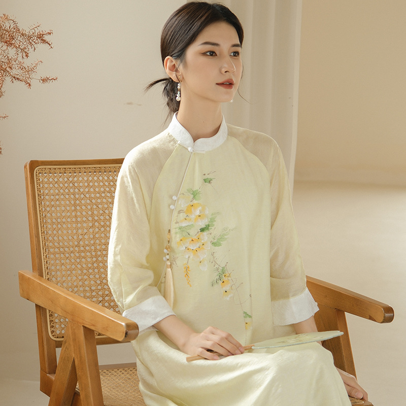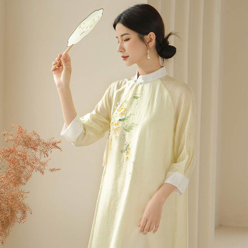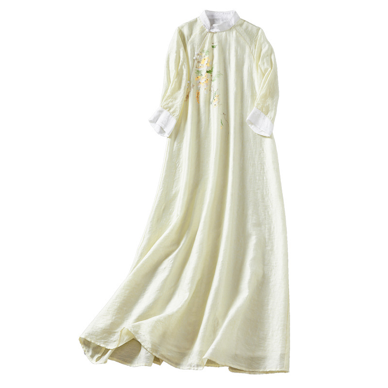 Qing Shuzhai Women's Zen Tea Dress Chinese Style National Style Retro Hand-painted Printed Skirt Casual Mid- Length Skirt