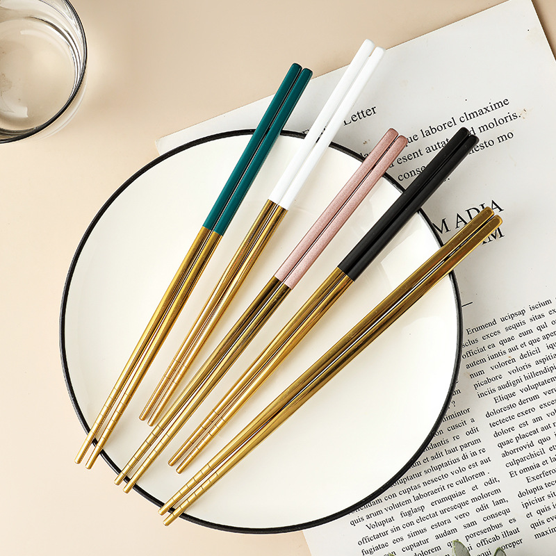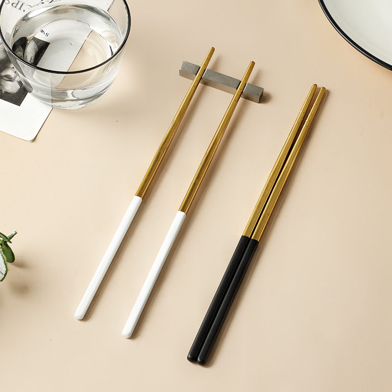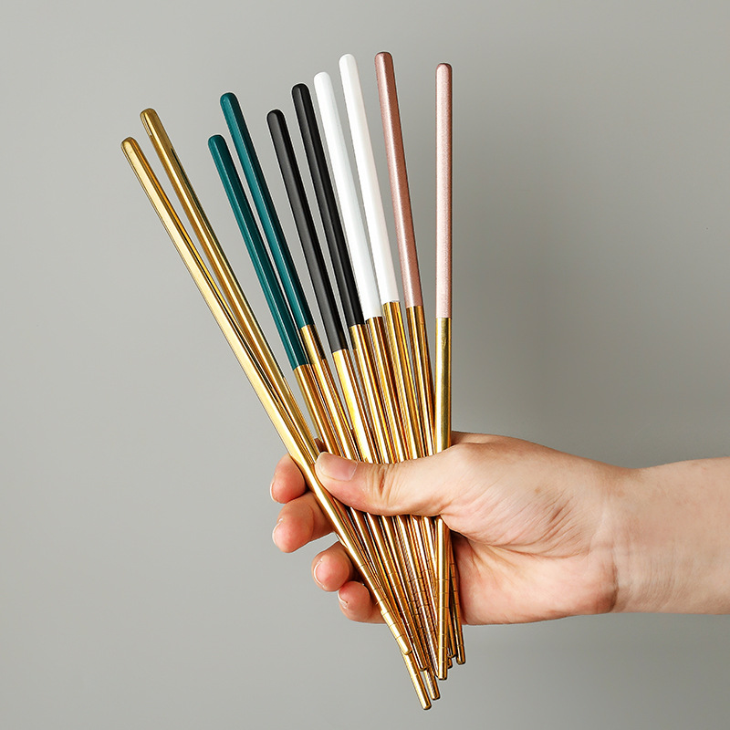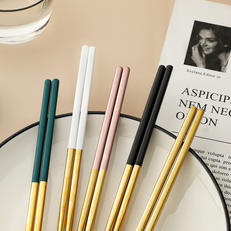 Xujia Nordic Internet Celebrity304 Stainless Steel Non-slip Chopsticks Creative Household Round Adult Chopsticks Gold-plated Tableware