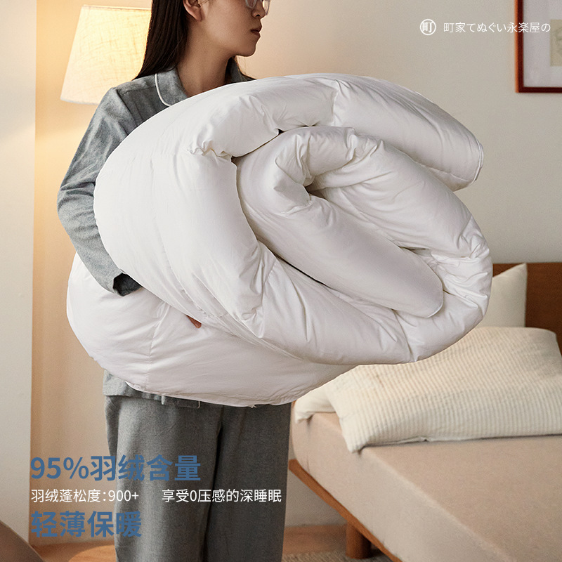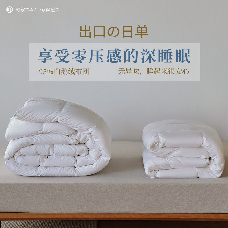 Japanese Modern95 White Goose Down Zero Pressure Duvet80 Soft Sai Silk Anti-drilling Wool Close-fitting Warm Winter Quilt Core