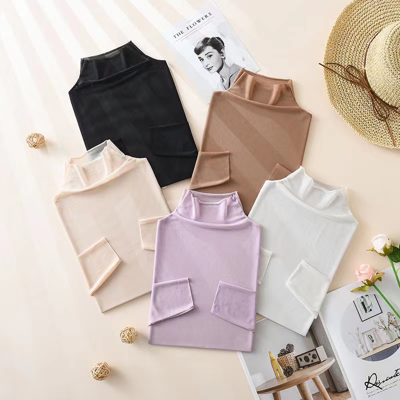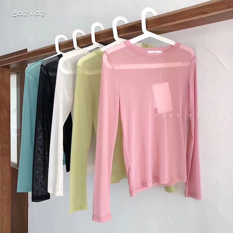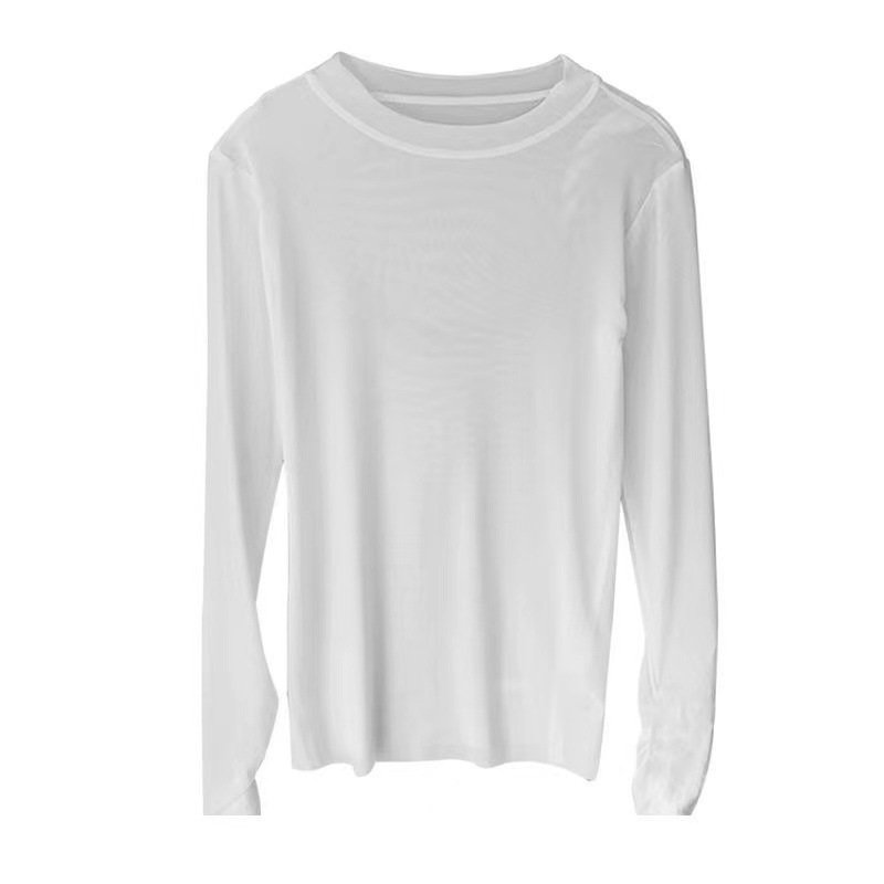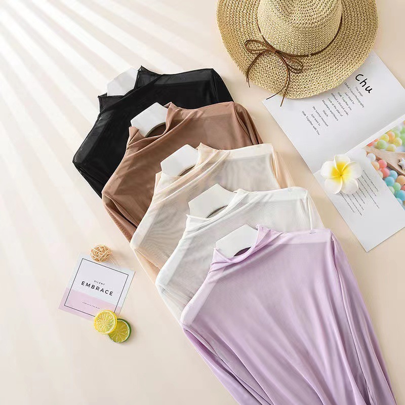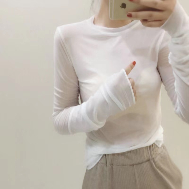 Ice Silk Mesh Candy Color See-through Sun Protection Clothing Summer Style Apple Green Thin Long-sleeved T-shirt Tops For Women