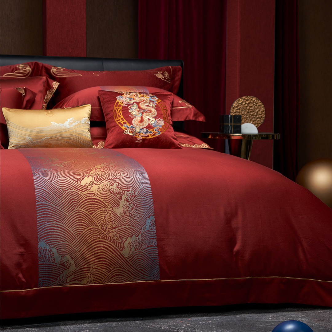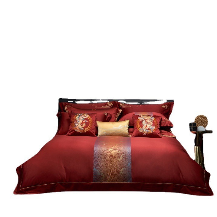 Top Luxury Ceiling-level High-definition Yarn-dyed Jacquard Bedding Wedding Red Pure Cotton Long-staple Cotton Four-piece Set With Sentiments Of The Capital