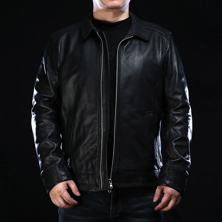 Haining Leather Men's Genuine Leather First Layer Sheepskin Fashion Casual Young And Middle-aged Stand Collar High-End Men's Jacket