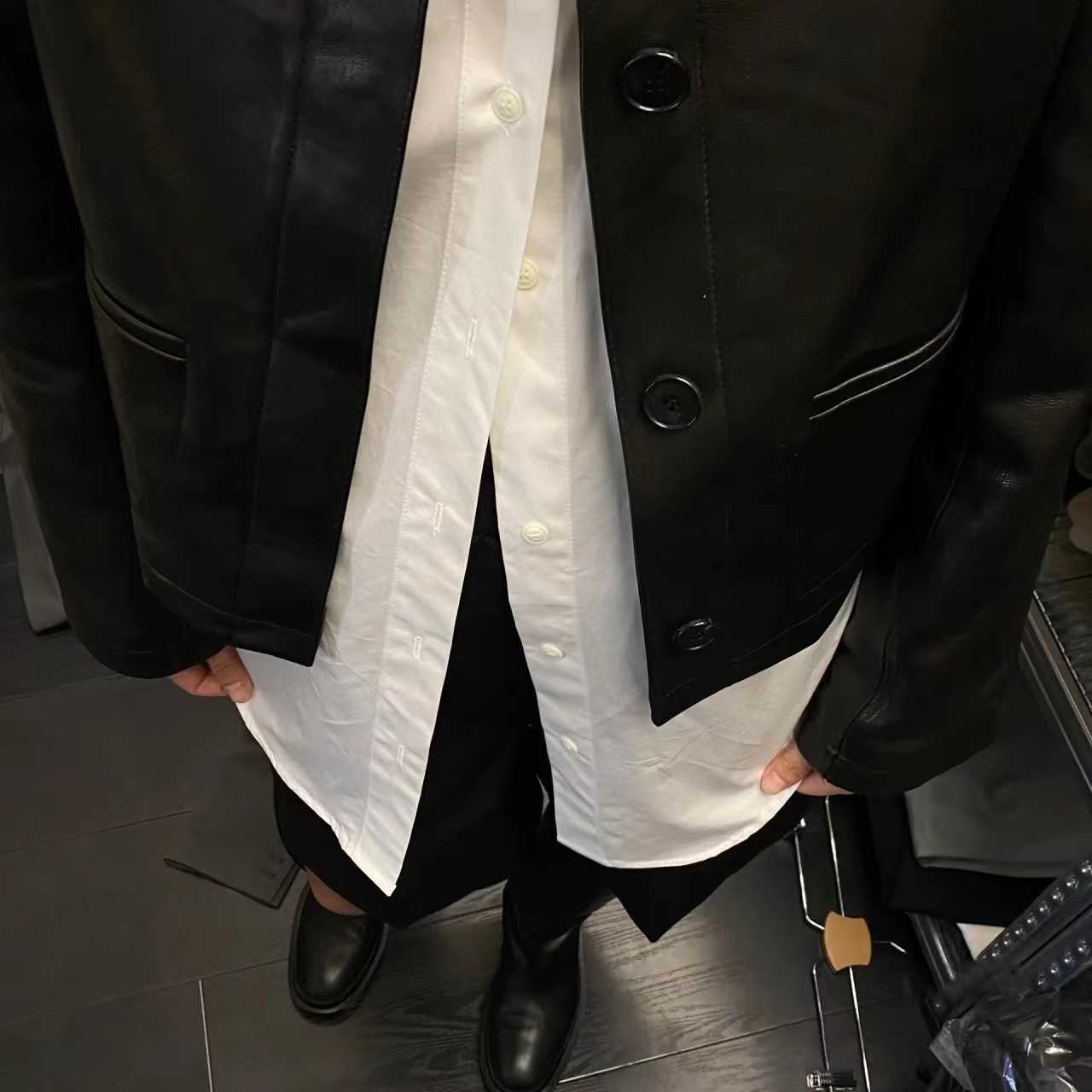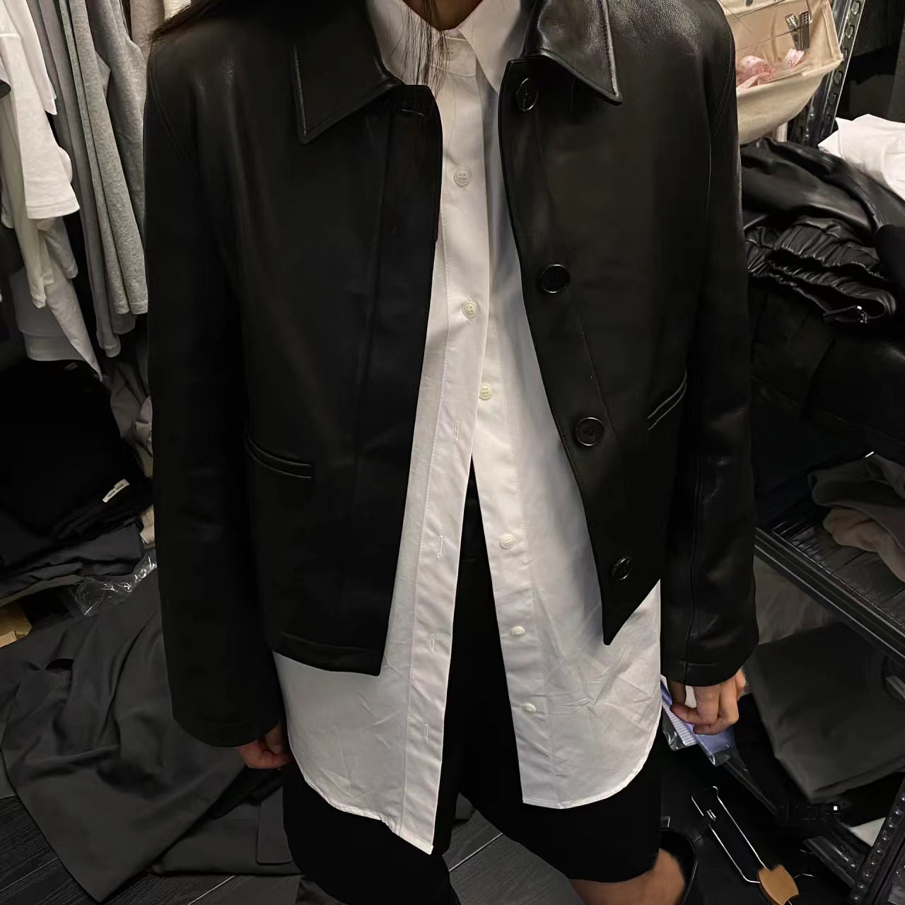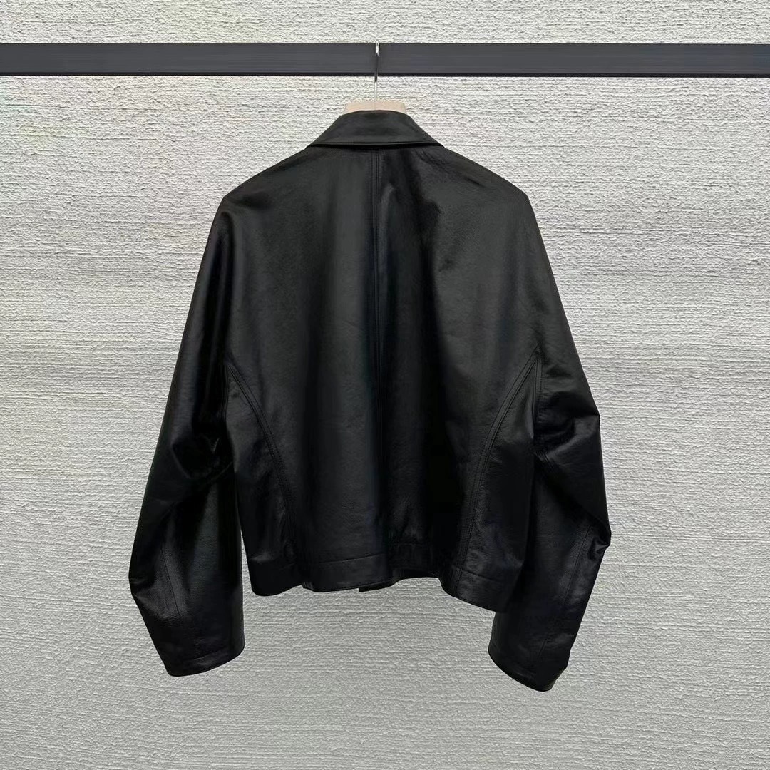 Autumn Korean Designer Casual Retro Neutral Style Handsome Motorcycle Lapel Short Leather Jacket