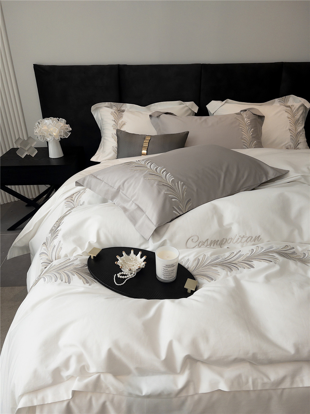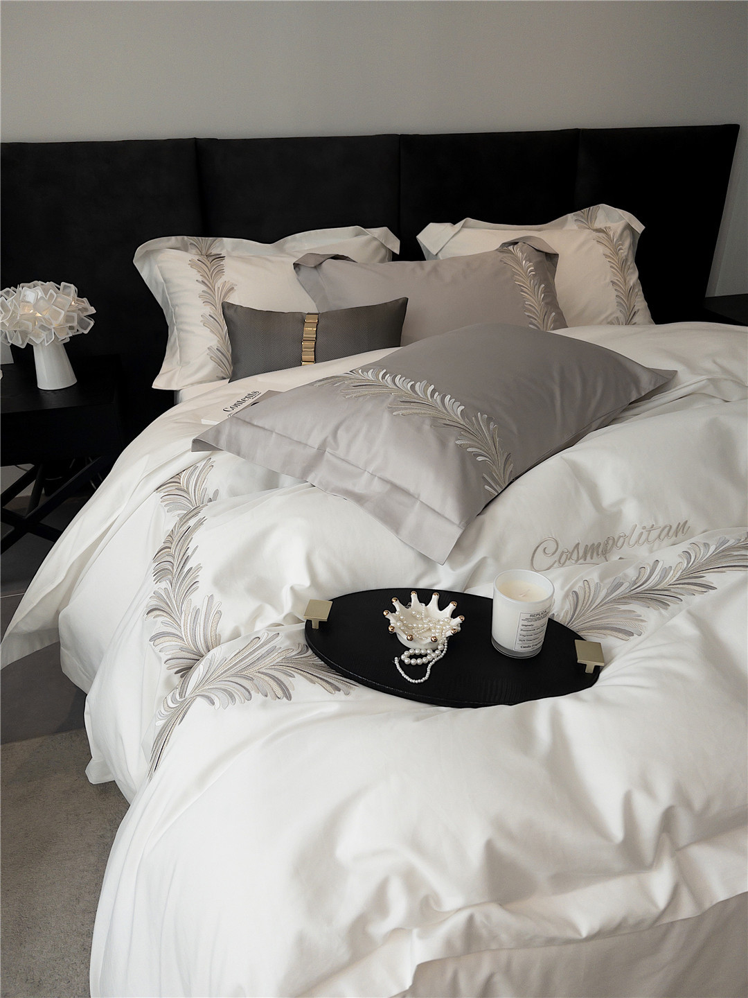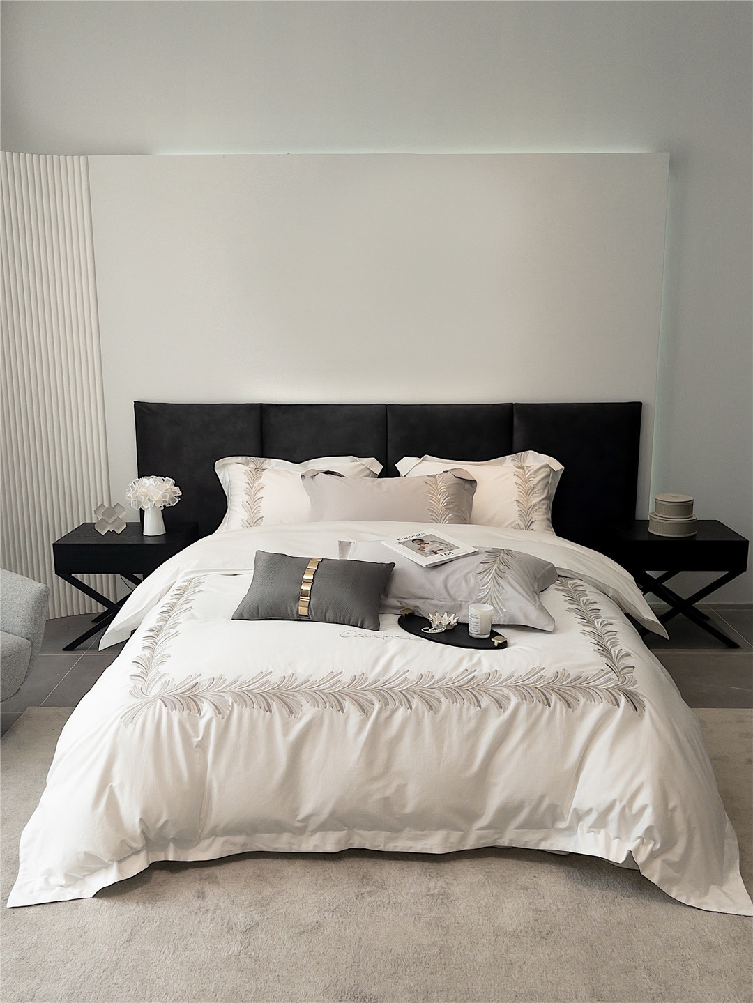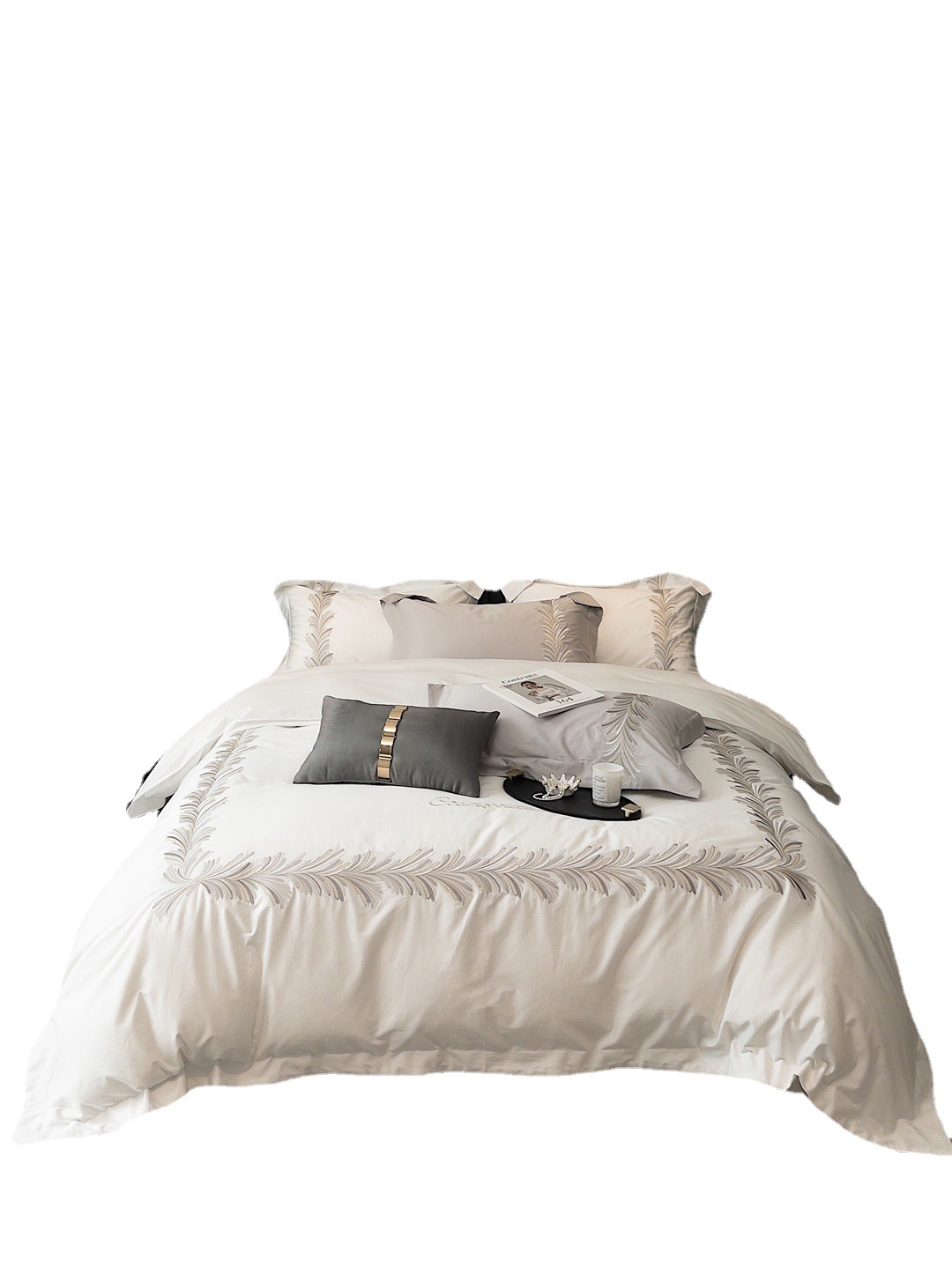 Light Luxury Long-staple Cotton Four-piece Set With High-end Simple Embroidery Quilt Cover Pure Cotton Bedding
