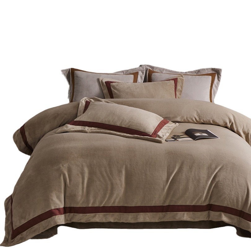 Autumn And Winter Maillard Series Minimalist Light Luxury Style Solid Color Warm Bedding Thickened Mousse Milk Velvet Four-piece Home Textile Set