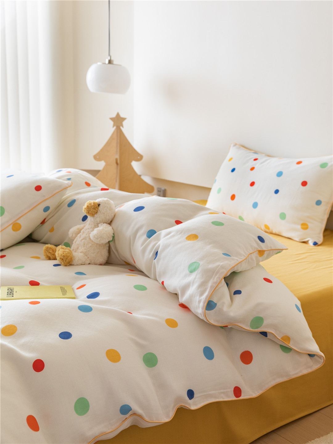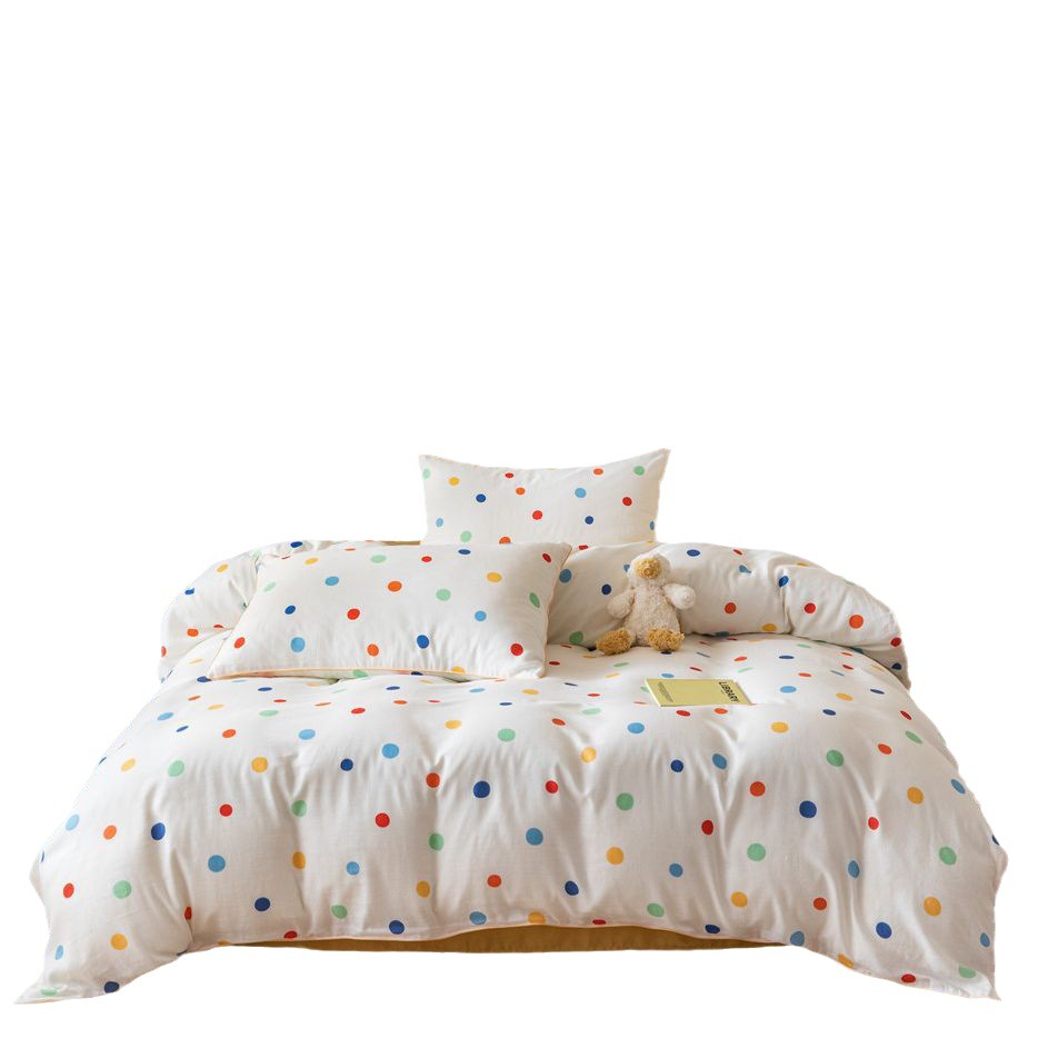Small Fresh Point Single And Double Bedding Girl's Heart Type A Mother And Baby Double Yarn Pure Cotton Three Or Four Piece Home Textile Set