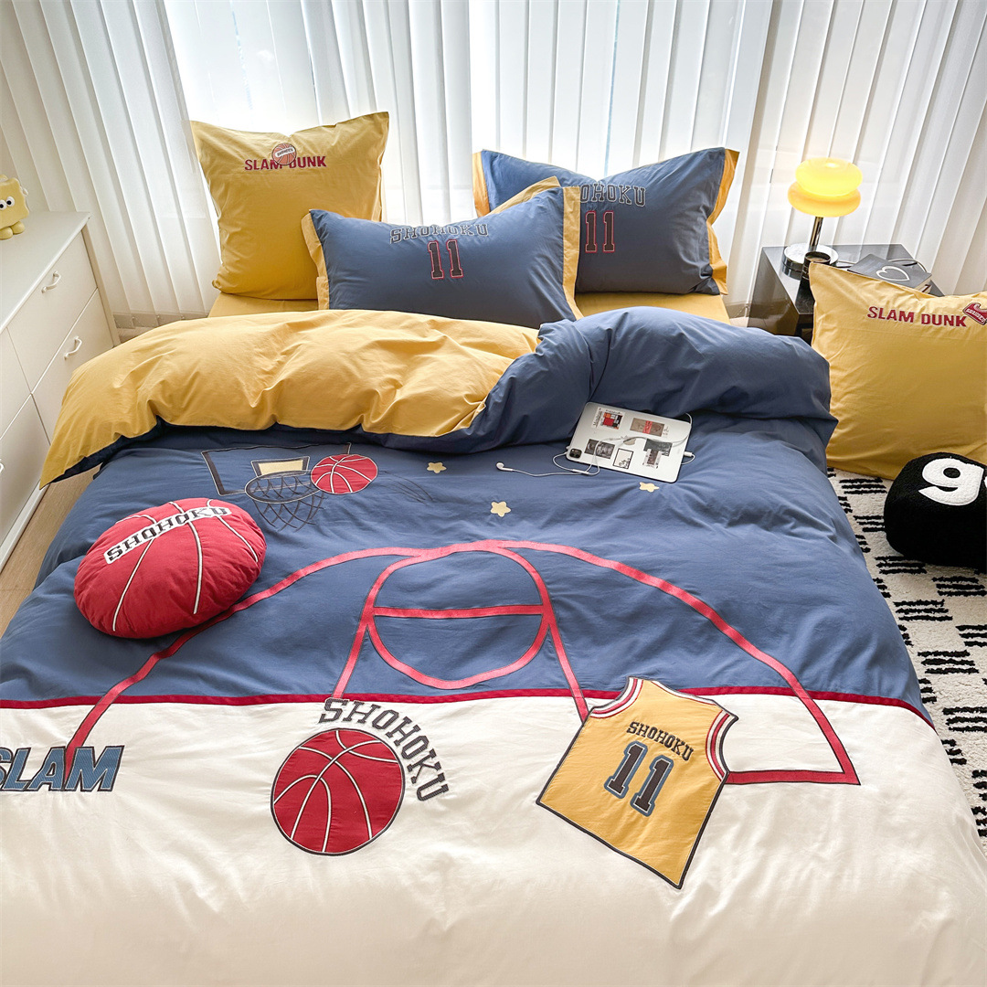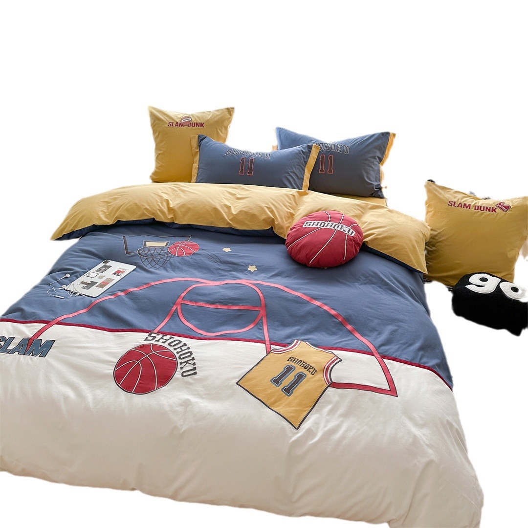 Youth Style Boys Basketball Embroidery Bedding Single And Double Bedding For Students Cotton Washed Cotton Three Or Four Piece Set Home Textiles
