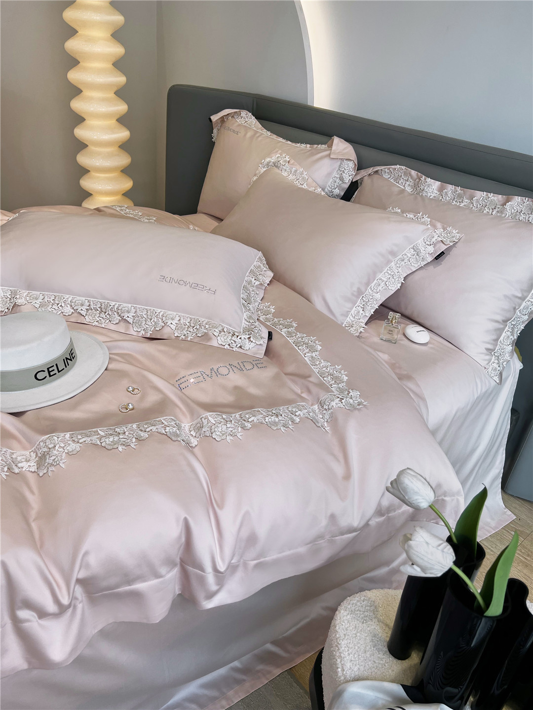 Dinghao High-end French Lace Bedding Bedding140-count Pure Cotton Long-staple Cotton Four-piece Set Home Textile Victory