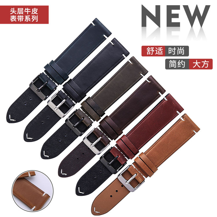 Oil Wax Retro Oily Iwatch Cowhide Watch Strap Huawei Genuine Leather Strap In Stock