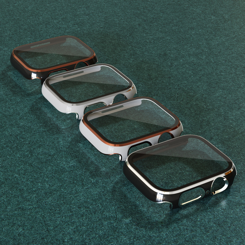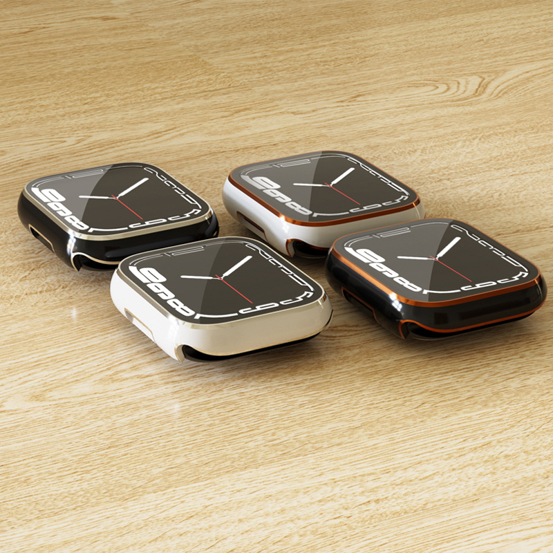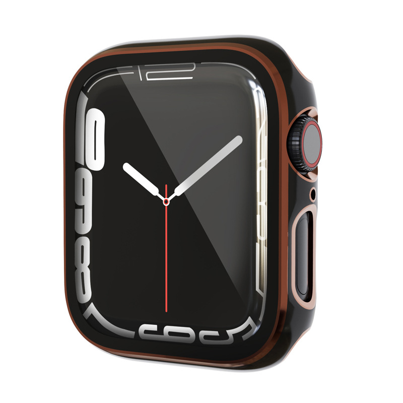 Suitable For Apple Watch Iwatch876543 Protective Cover Apple Watch Electroplating Dazzling Carving Two-color Integrated Shell