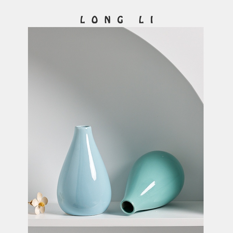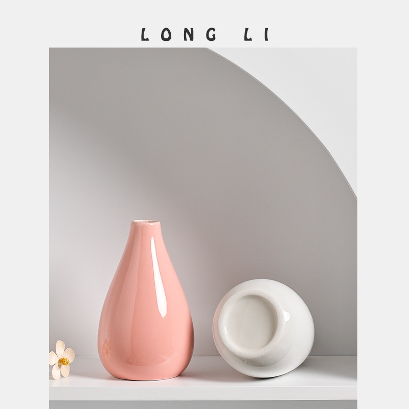 Longli Ceramic Vase Simple Japanese Style Home Living Room Entrance Ornaments Decorative Soft Dried Flowers Hydroponic Flower Device