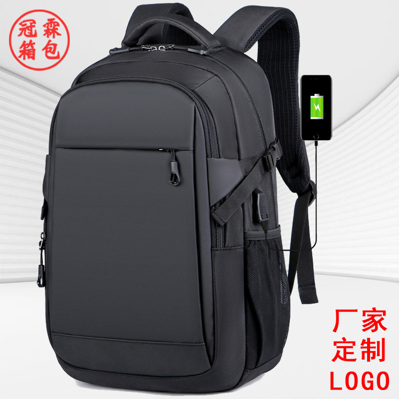 Nylon Backpack With U S B Charging Port And Headphone Hole, Fashionable Leather Membrane Backpack, Custom Backpack, Black