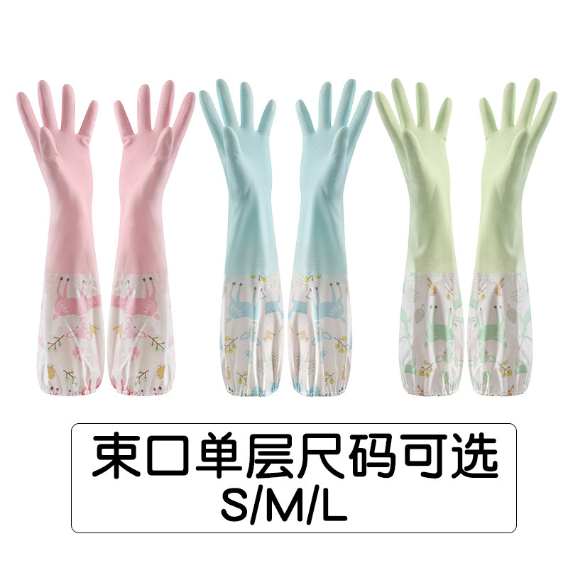 Housework Dishwashing Gloves Elastic Drawstring Wide Mouth Sleeves Waterproof Rubber Gloves Plus Velvet Extended Gloves