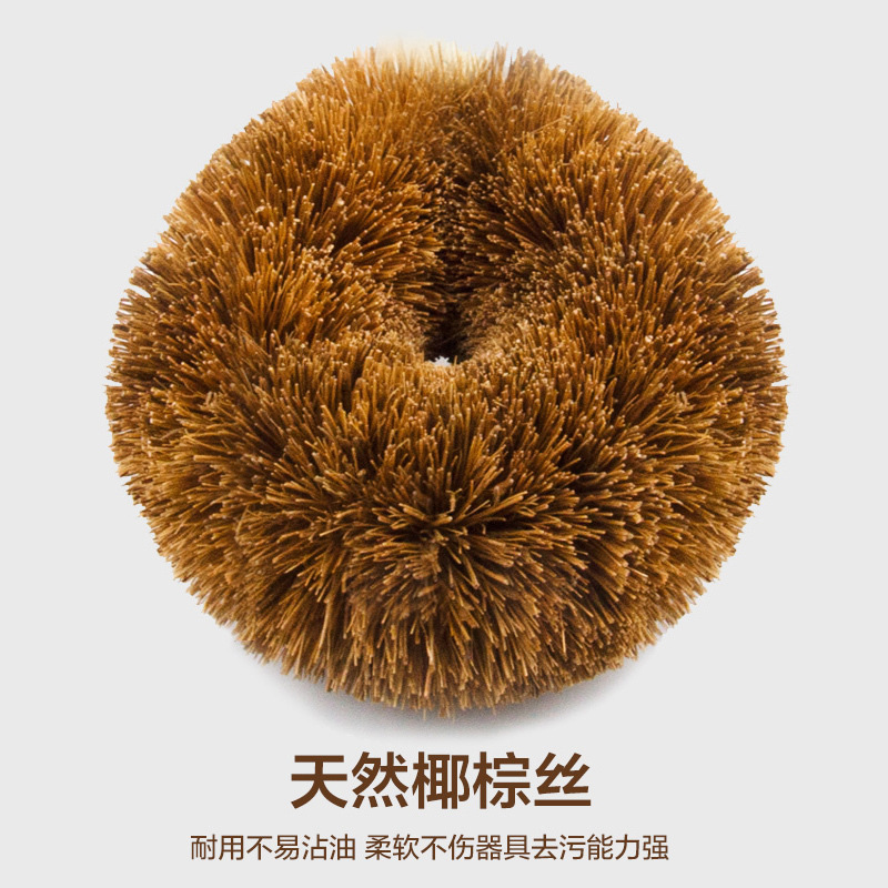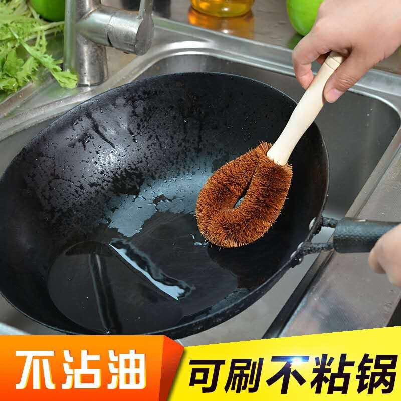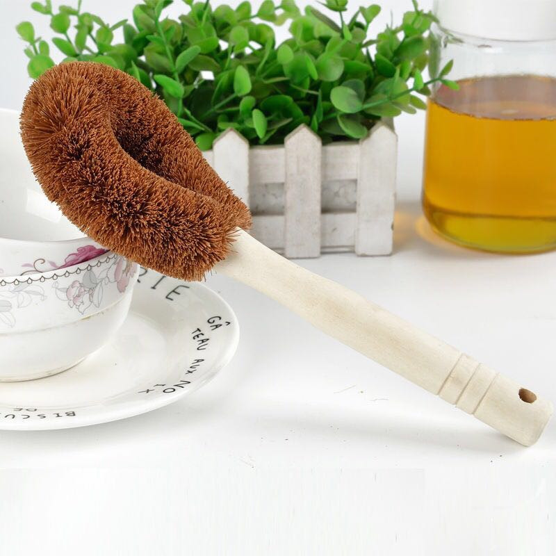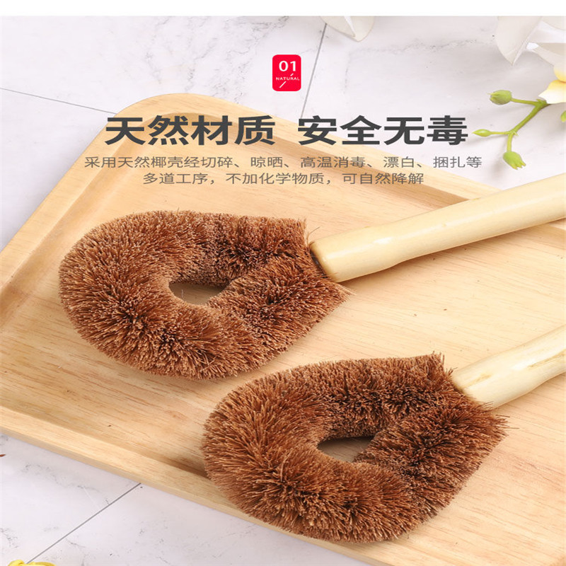 Natural Wooden Handle Coconut Palm Pot Brush Household Kitchen Cleaning Brush Pot Washing Dishwashing Brush Long Handle Pot Washing Brush