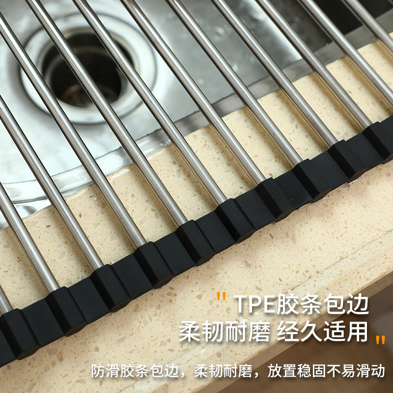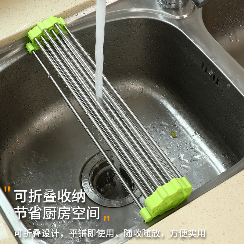 Stainless Steel Foldable Sink Drain Rack Roller Shutter Type Dish Control Drying Rack Water Washing Vegetable Washing Fruit And Vegetable Drip Drying Water Rack