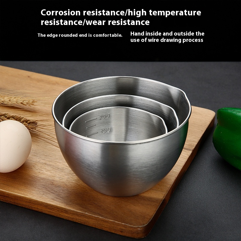 304 Stainless Steel Bowl With Scale, Vegetable Preparation Baking Bowl, Household Cooking Bowl, Fruit Salad Bowl, Single Egg-beating Bowl