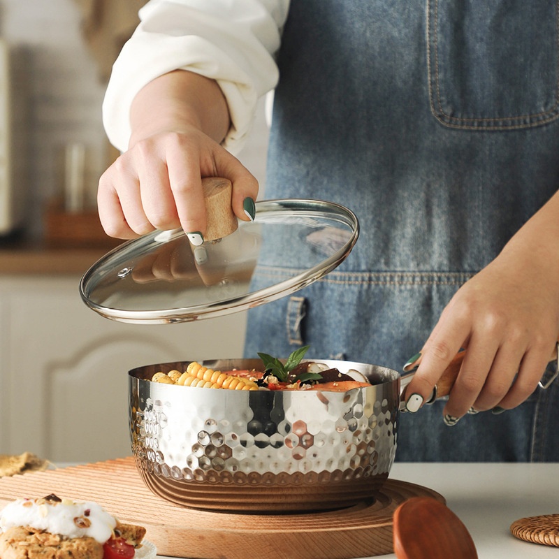 304 Stainless Steel Snow Pan Milk Pot Non-stick Breakfast Steamingtant Noodles Cooking Pot Baby Food Supplement Pot Japanese Soup Pot