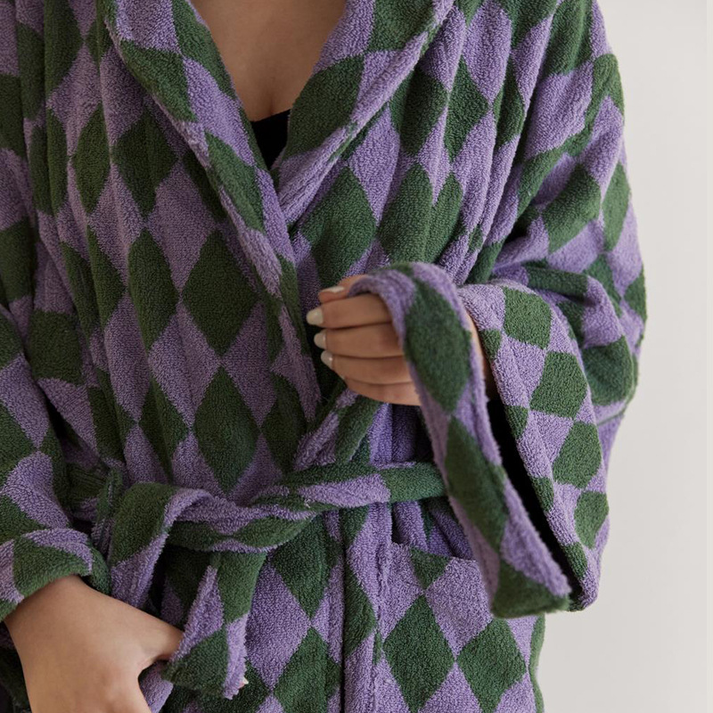 Retro Diamond Check Plush Cotton Bathrobe Hotel Simple Towel Material Home Clothes Adult Men's And Women's Bathrobe