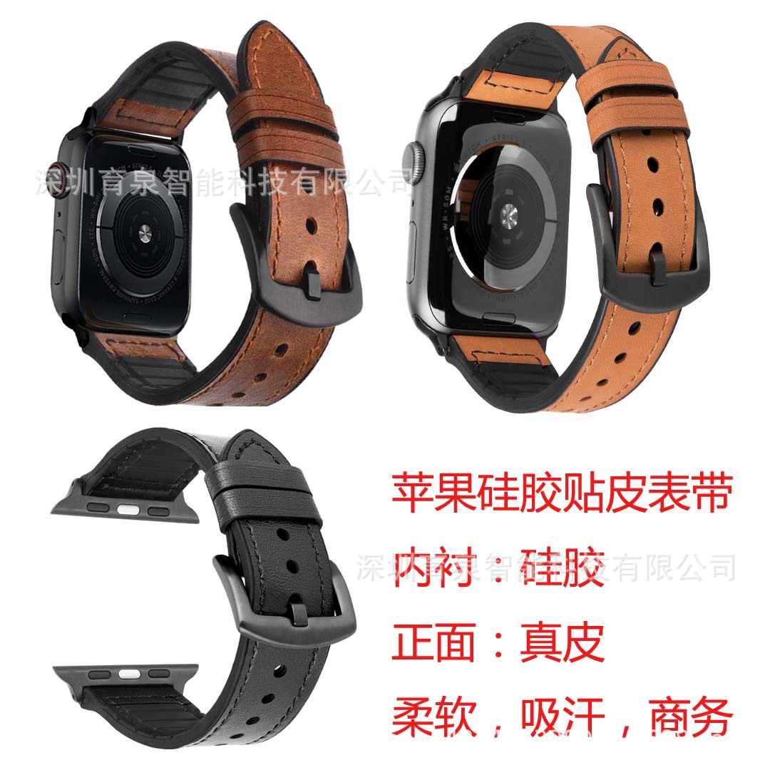 Suitable For Apple Watch Apple Watch Silicone Sticker First Layer Genuine Leather Iwatch Strap Sports Model Goods