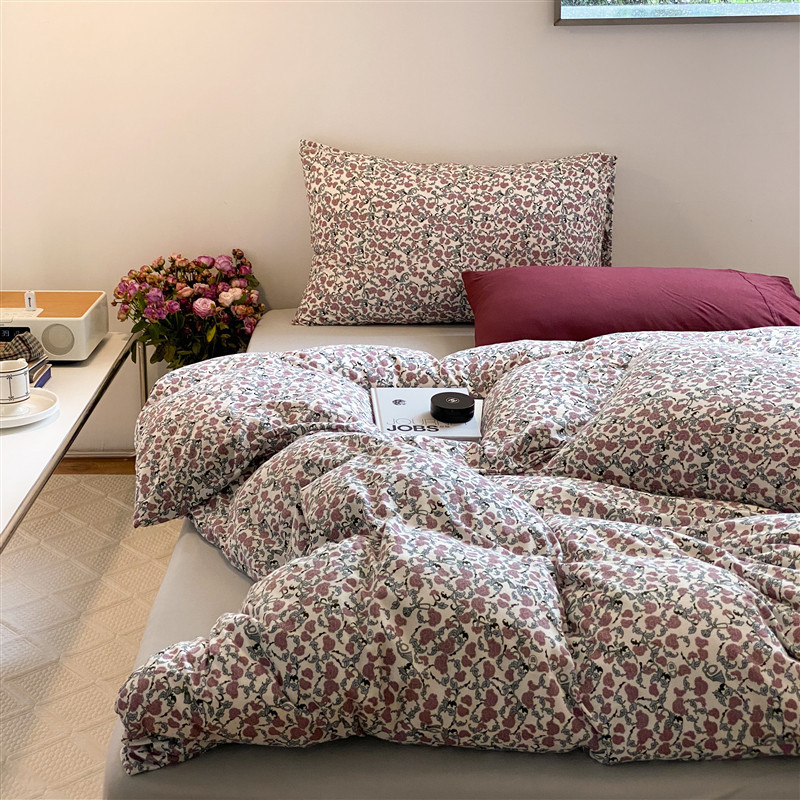 Retro Floral Knitted Cotton Set Pure Cotton Fashion Printed Four-piece Set Floral Style Set