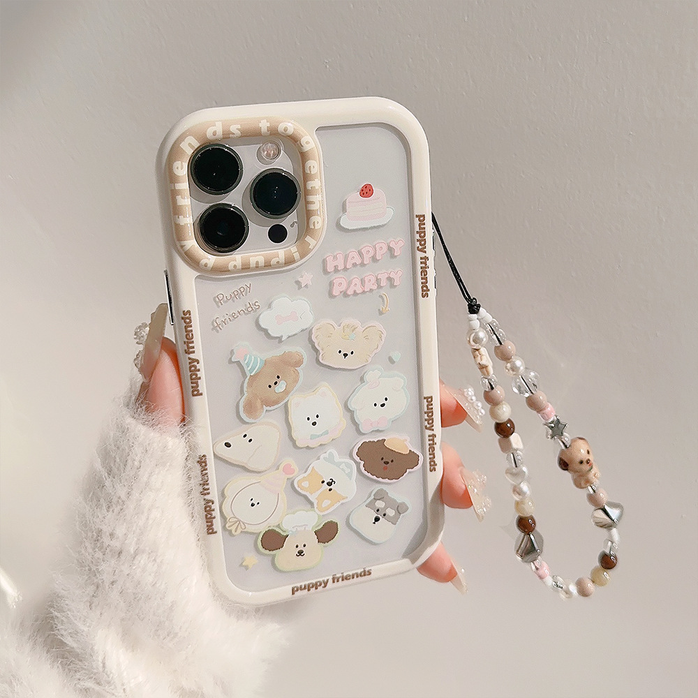 Suitable For15 Pro Max Apple Mobile Phone Case IPhone13 Funny Puppy Head11 Original Cartoon12 Hard14 Hanging Chain