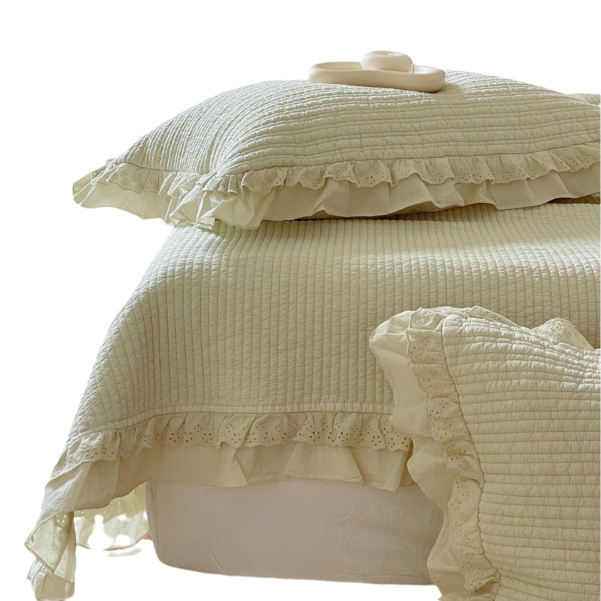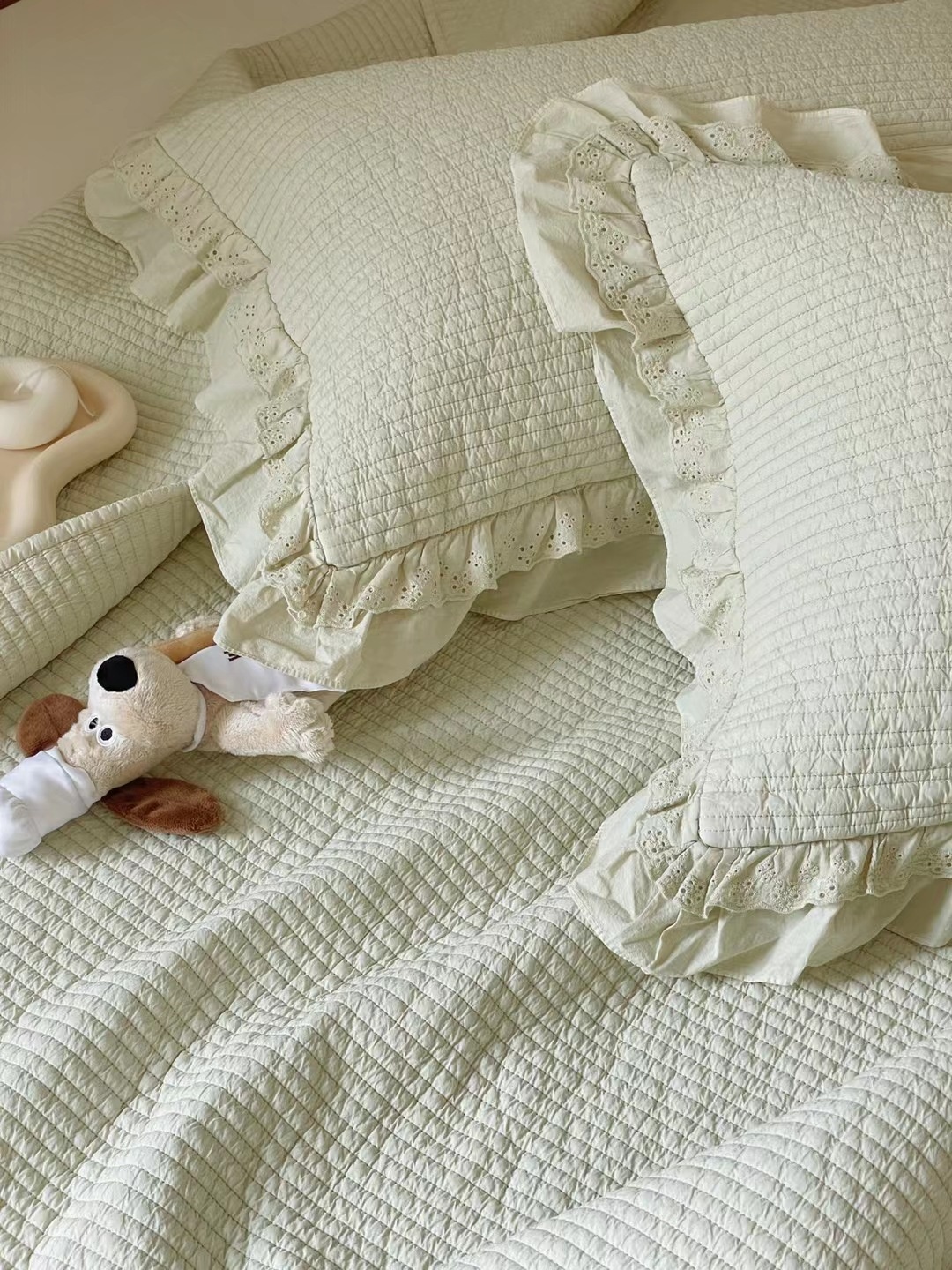 Korean Sand-washed Lace Bed Cover Three-piece Set100% Cotton80 Count Blogger Cream Bedroom Soft Decoration Quilting