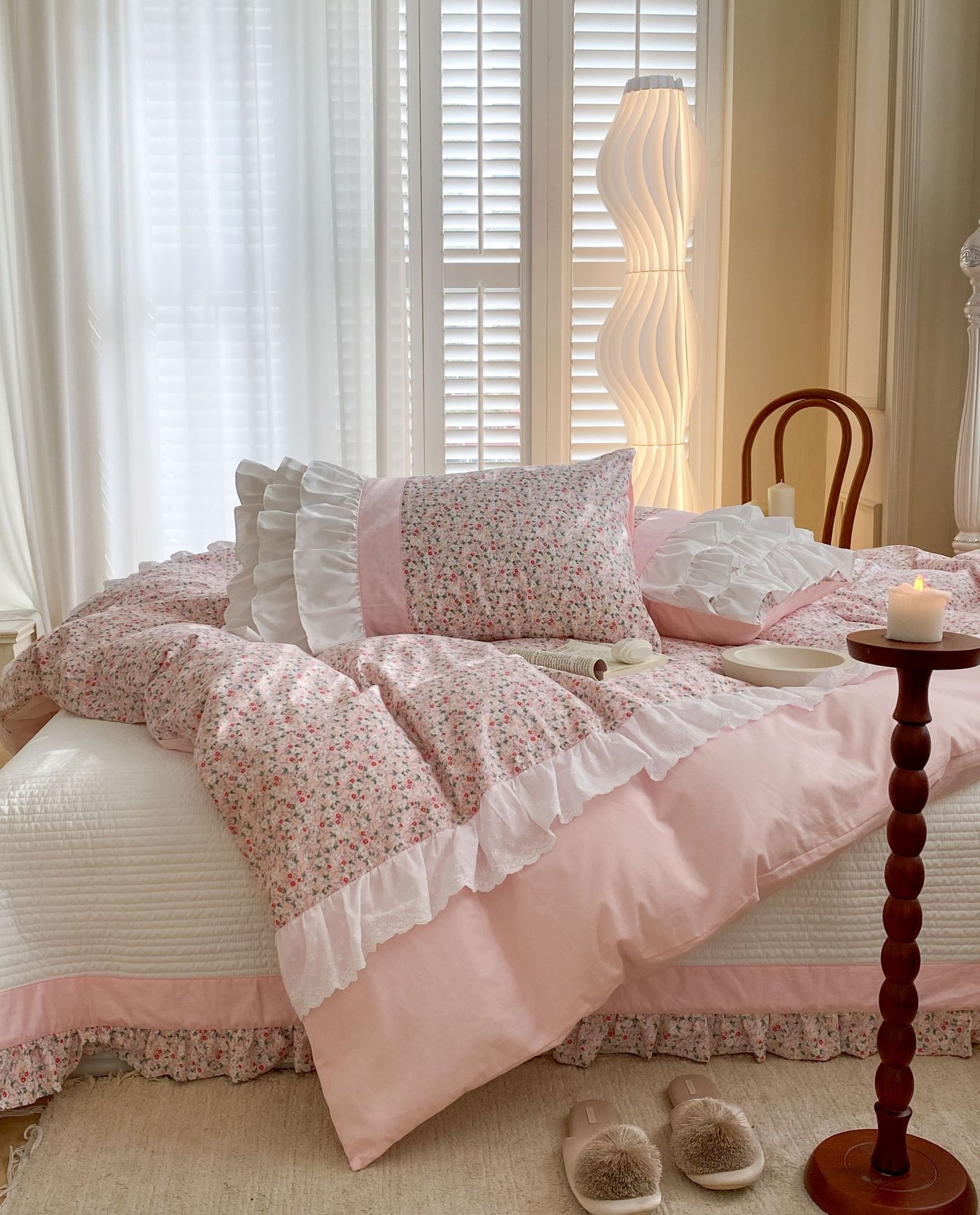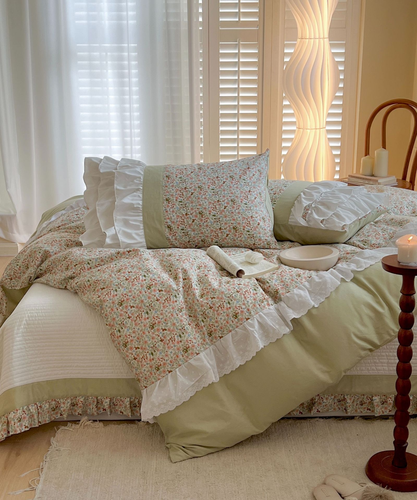 Cotton Small Floral Bed Cover Series- Home Style Bed Cover Four-piece Set Retro Style Floral Bedding