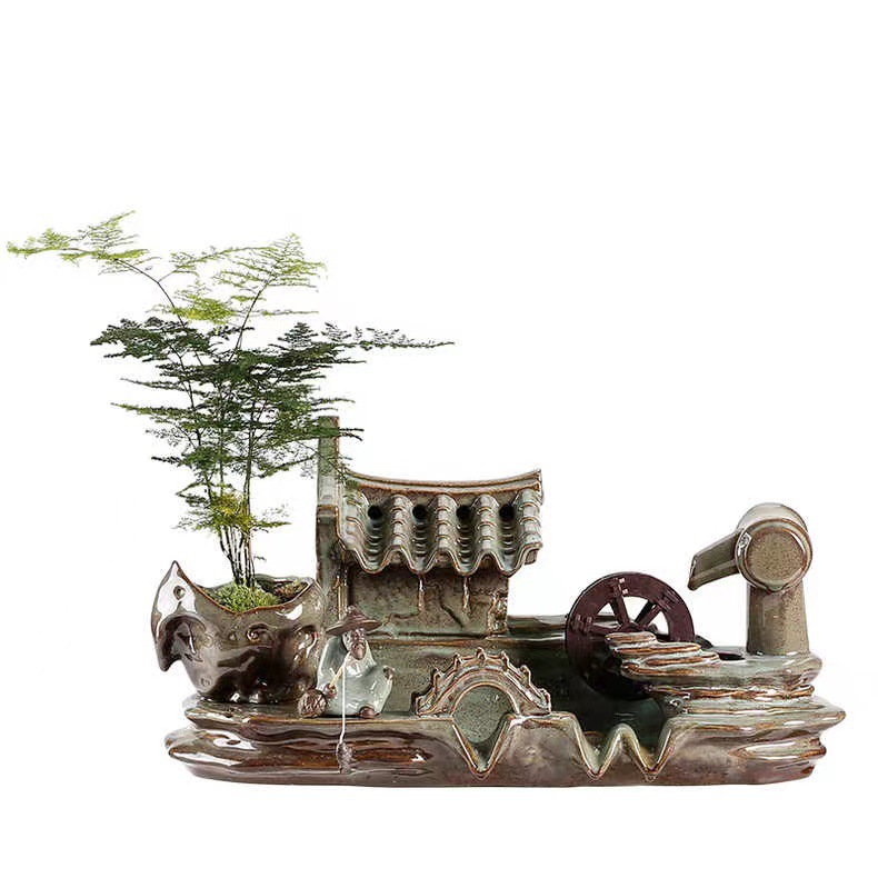 Chinese Zen Ceramic Circulating Water Device Ornaments Fish Tank Creative Water Outlet Decoration Humidification Landscaping Fountain Diy