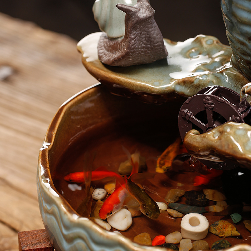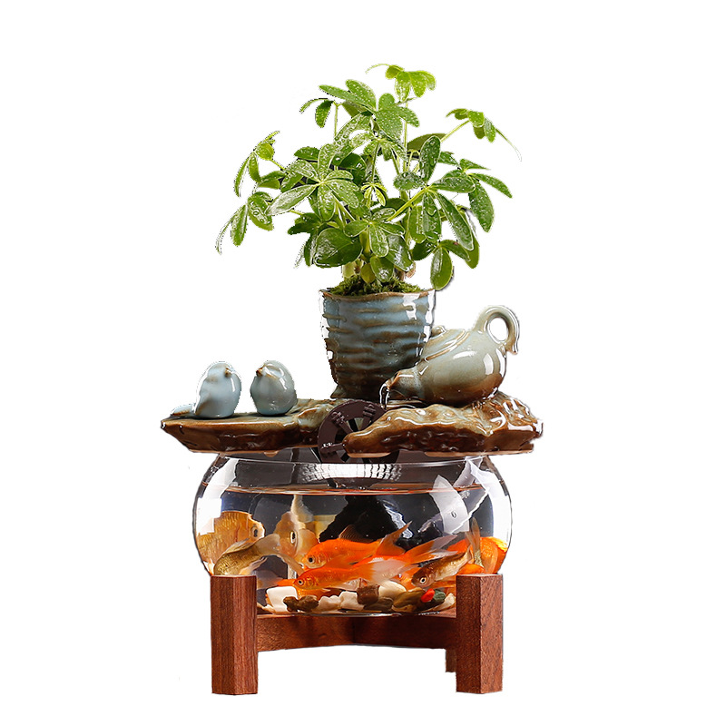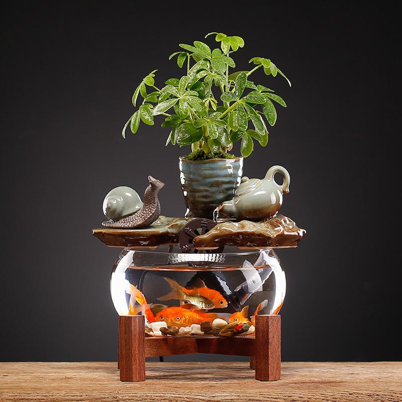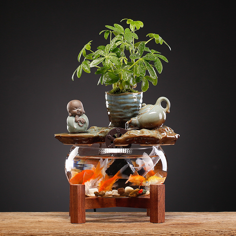 Chinese Style Flowing Water Glass Fish Tank Ornaments Small Desktop Living Room Tea Table Office Decorations Circulating Water Landscape