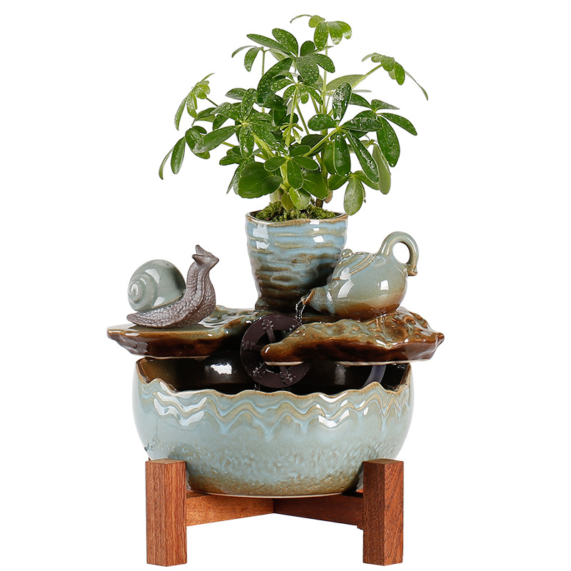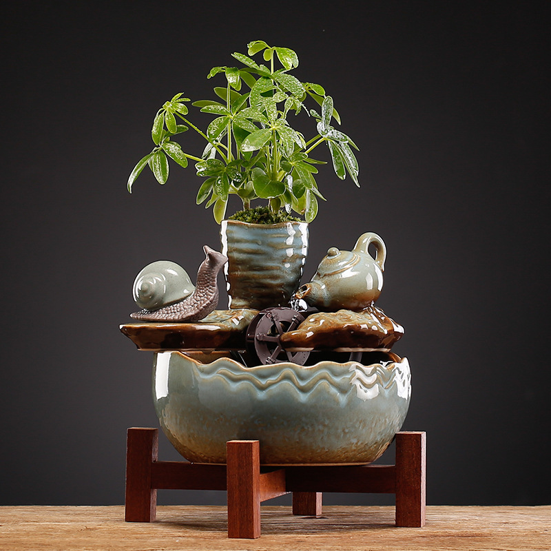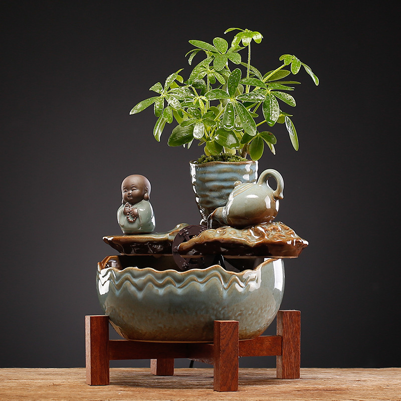 Chinese Style Money-making Water Ornaments Ceramic Small Desktop Living Room Tea Table Office Decorations Circulating Water Landscape