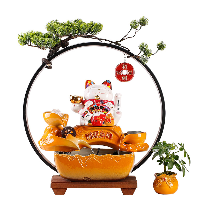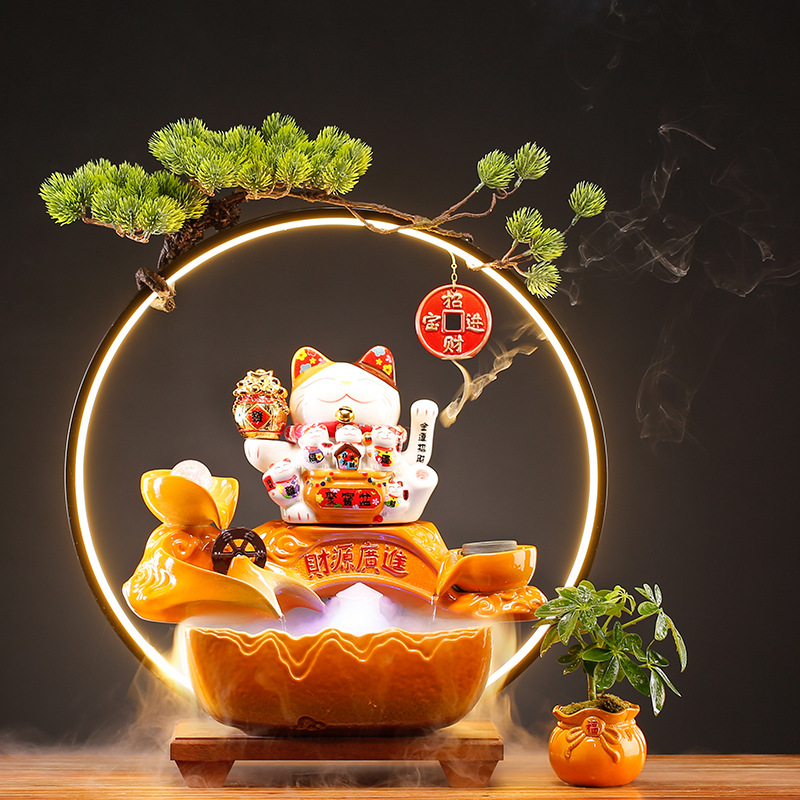 Creative Lucky Cat Flowing Water Ornaments To Bring Wealth Chinese Style Decoration Desktop Living Room Office Gift Opening Gift
