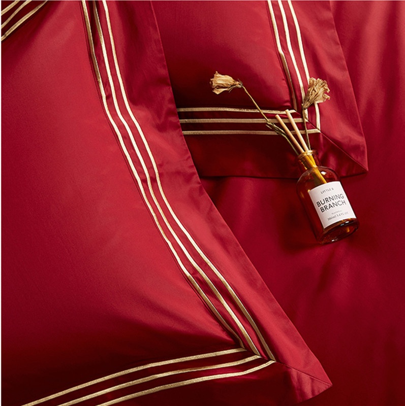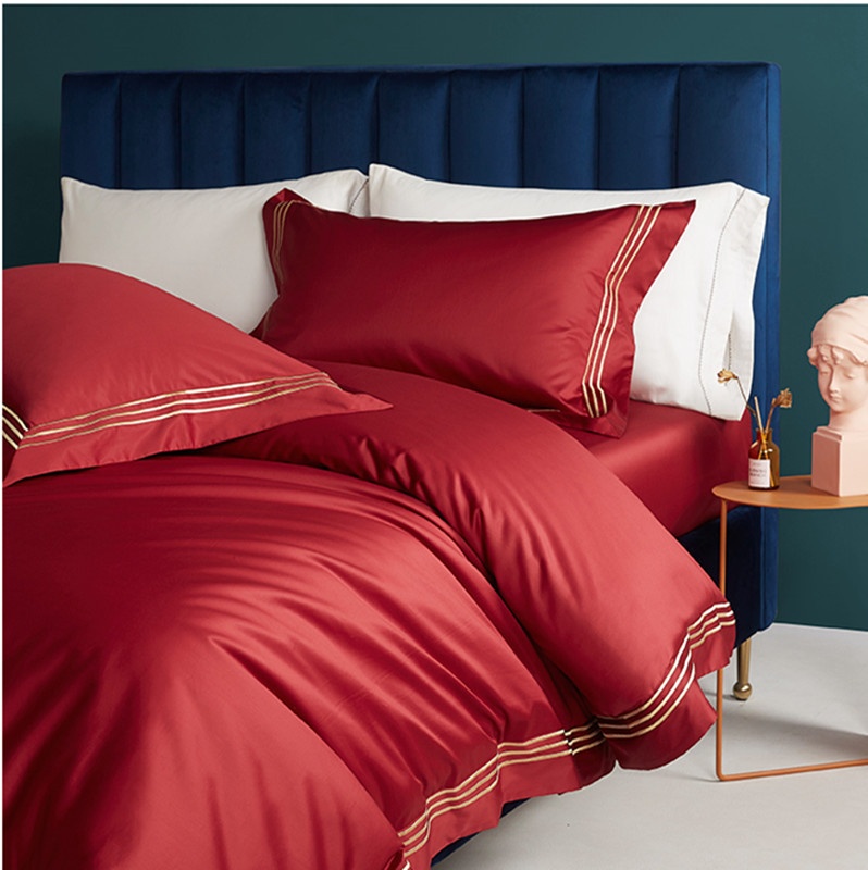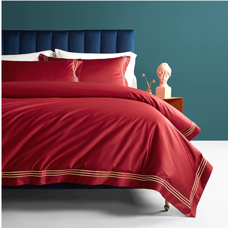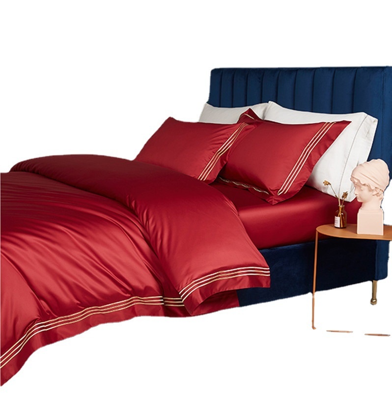 High-end100-count Xinjiang Aksu Long-staple Cotton Light Luxury Simple Red Wedding Bedding Four-piece Wedding Set