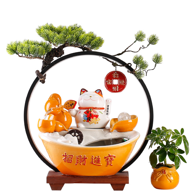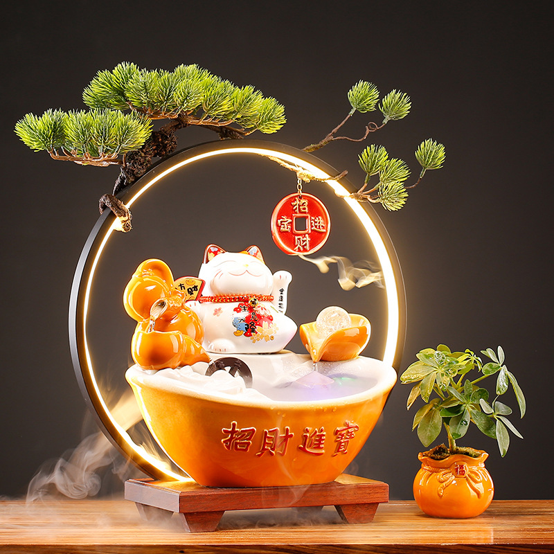 Lucky Cat Ornaments Flowing Water Makes Money Business Is Prosperous Office Decoration Desktop Shop Cashier Opening Gift