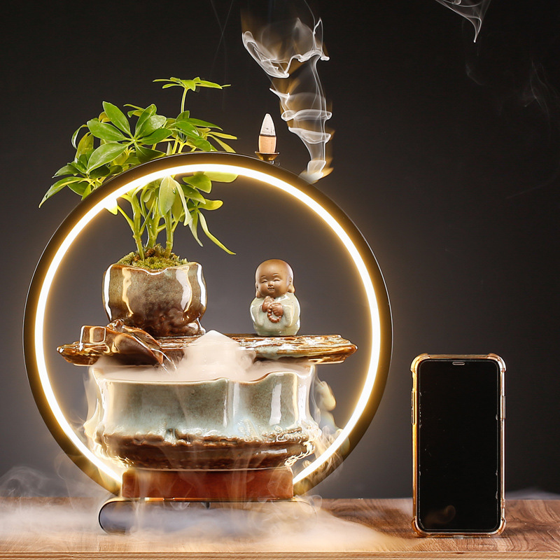 Chinese Style Ceramic Fish Tank Circulating Water Transfer To Generate Wealth Desktop Fountain Creative Ornaments Opening Housewarming Gifts