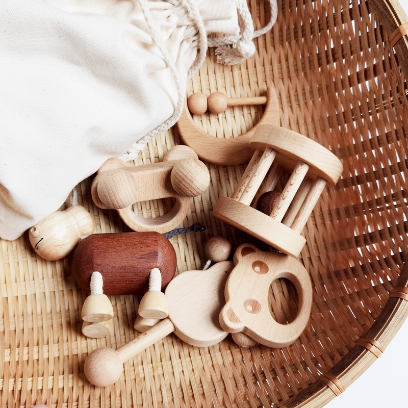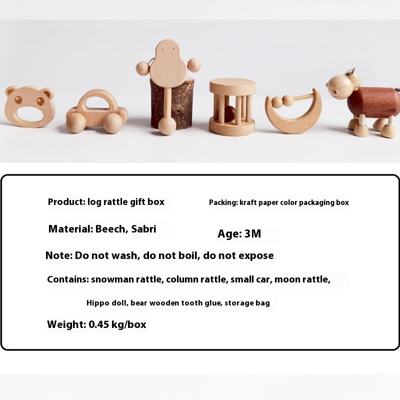 Born Log Gift Box Hand Rattle3 Months And100 Daysborn Gift Box One-year-old Gift Rattle Wooden Toy