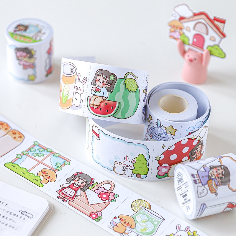 Paper Dyed Softberry Jam Writing Frame Series Tape Cute Cartoon Girl Handbook Material D I Y Decorative Stickers