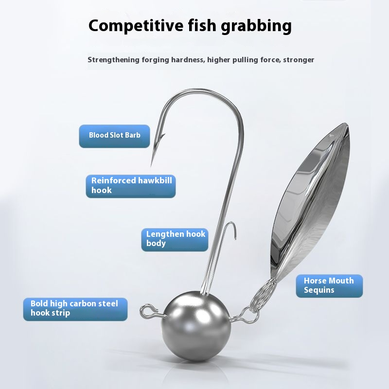 Composite Sequined Willow Leaf Lead Head Hook Rotating Anti-hanging Bottom Lua Fake Bait Strengthens Without Damaging The Bait Lead Head Fishhook