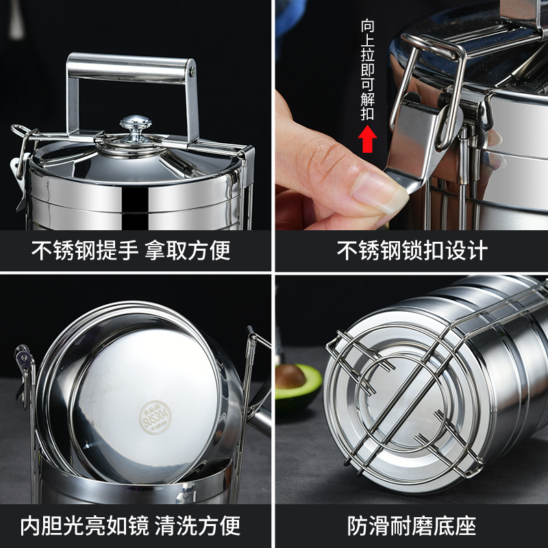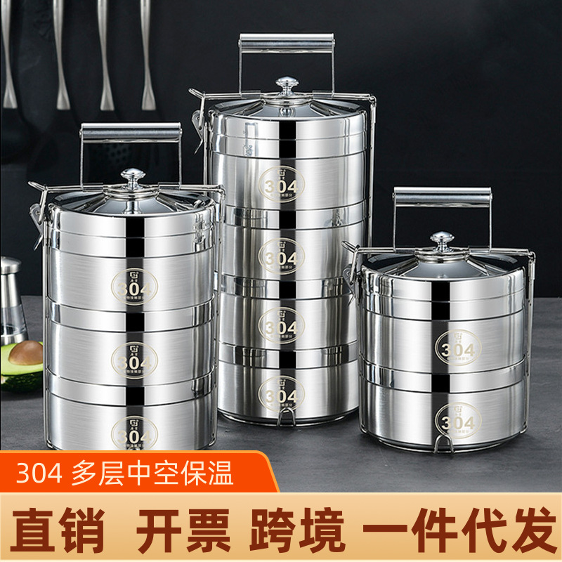 304 Stainless Steelulated Lunch Box,Hollow Multi-layer Anti-spill Food Basket,Large Capacity Partitioned Food Grid,Double-layer Basket And Pot