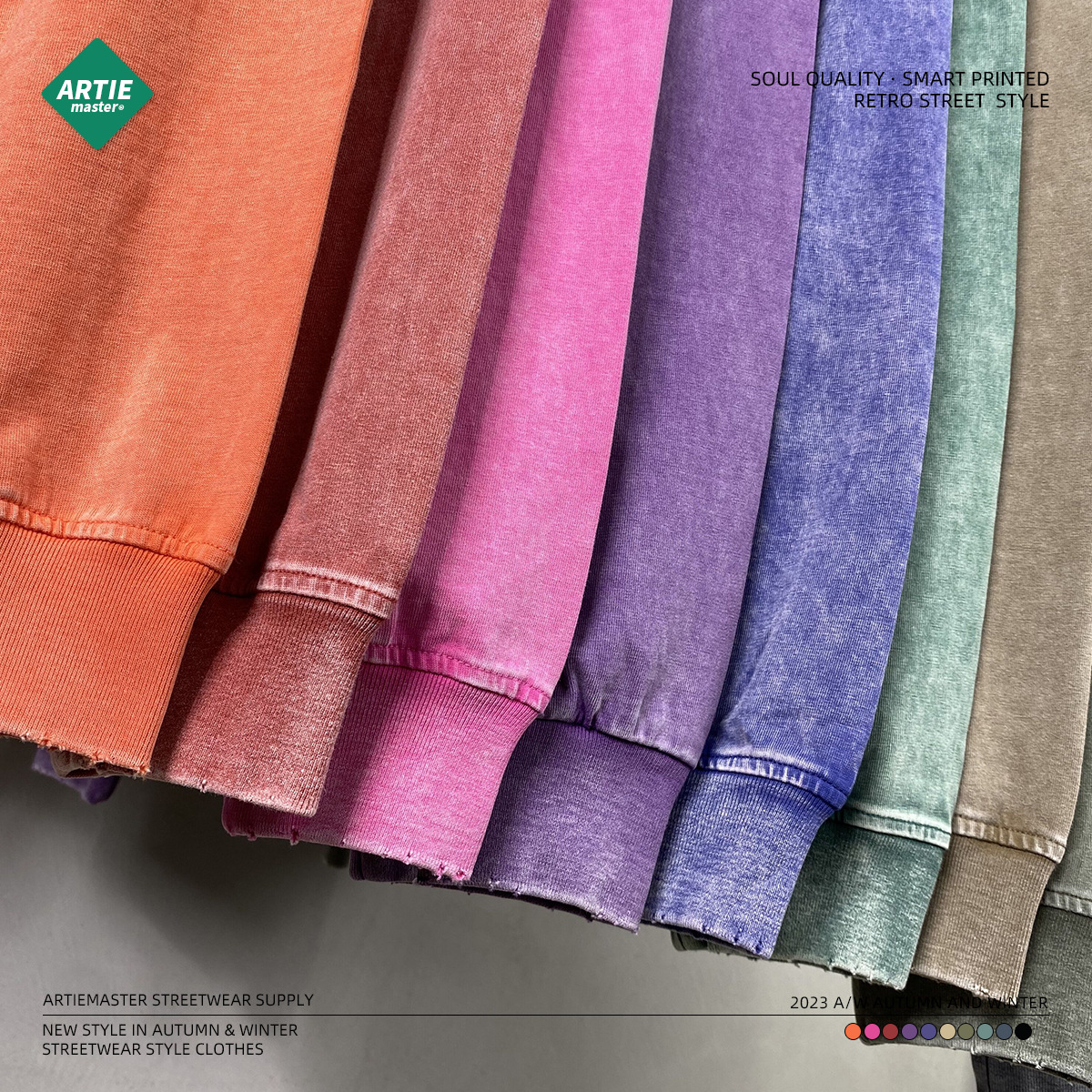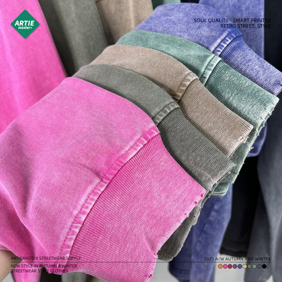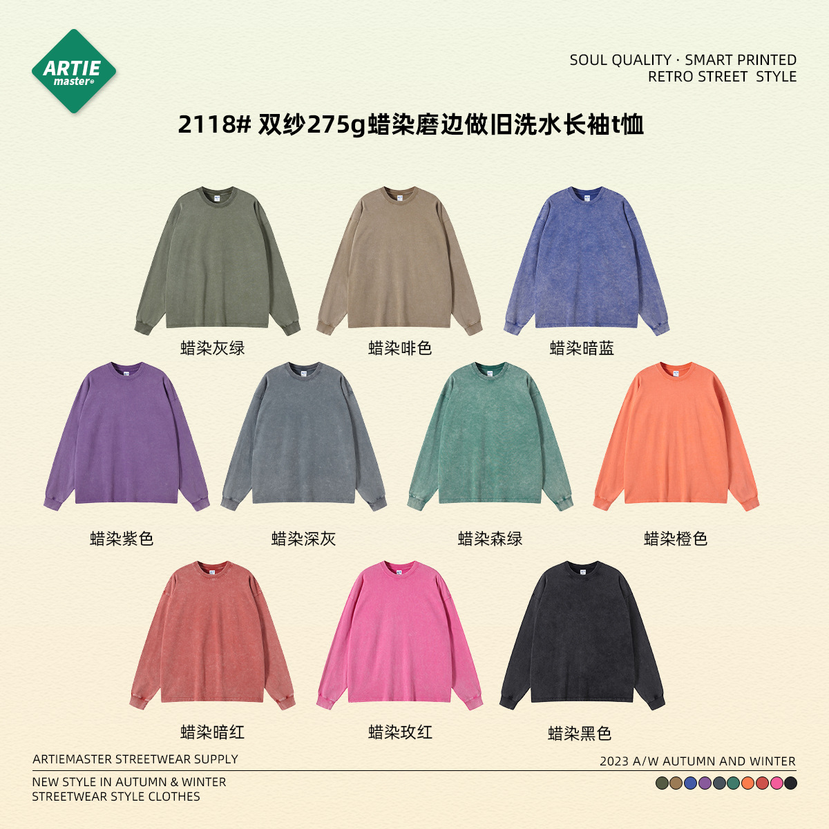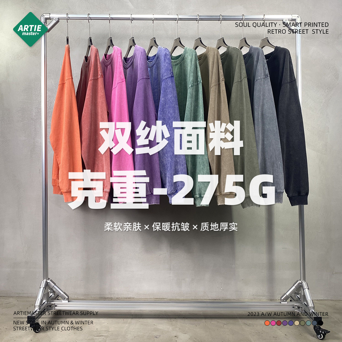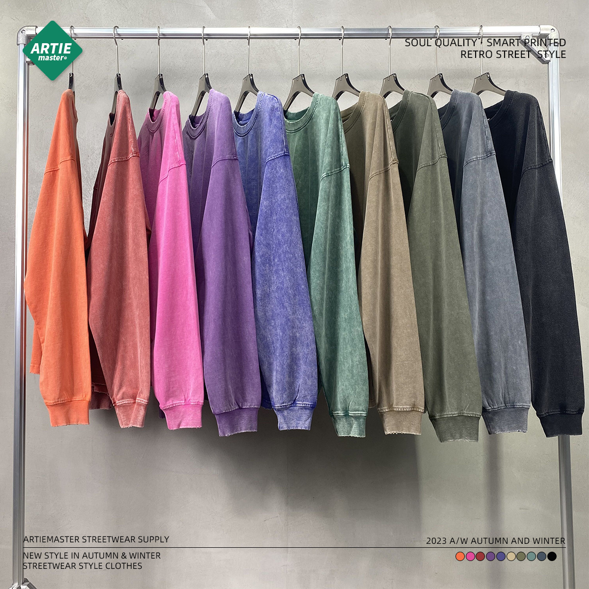 Autumn And Winter Fashion Brand Heavyweight275g Retro Ba Washed Long-sleeved T-shirt Men's Round Neck Couple's Top Long T