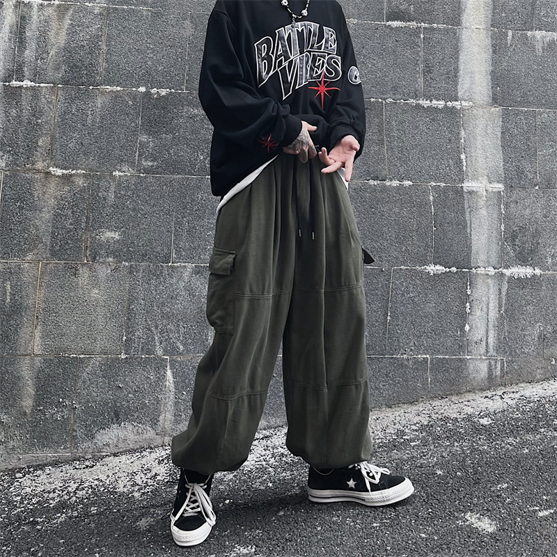 Hong Kong Style Work Pants Men's Autumn Japanese Styley Straight Loose Wide Leg Casual Trousers Drawstring Leggings