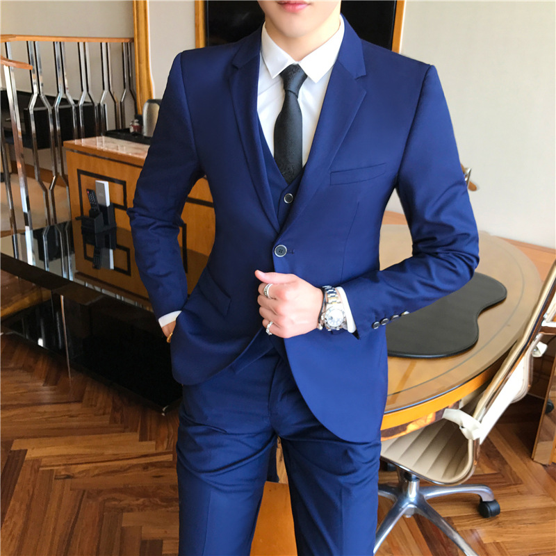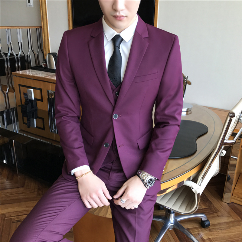2018 Quality Men's Casual Suit Suit Brown Temperament Three-piece Groom Wedding Dress Suit
