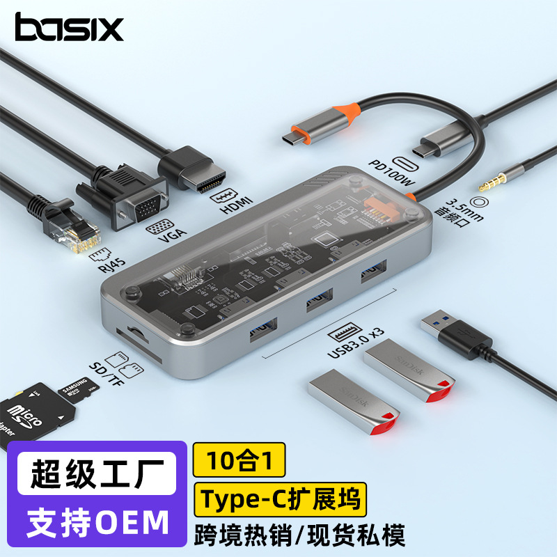 Popular Type-c Docking Station USBHub Multi-function Hub USB3.0/RJ45 Gigabit Docking Station