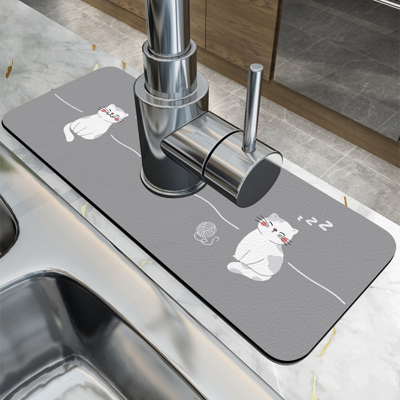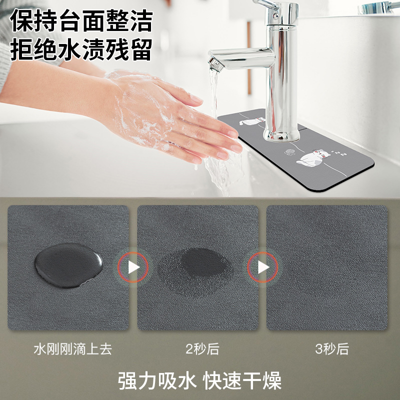 PULeather Kitchen Faucet Diatom Mud Floor Mat Absorbent Washbasin Quick-drying Mildew-proof Bathroom Sink Countertop Waterproof