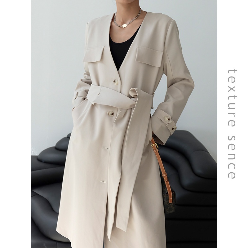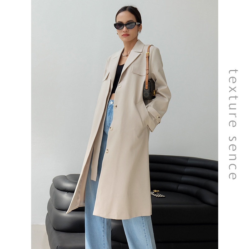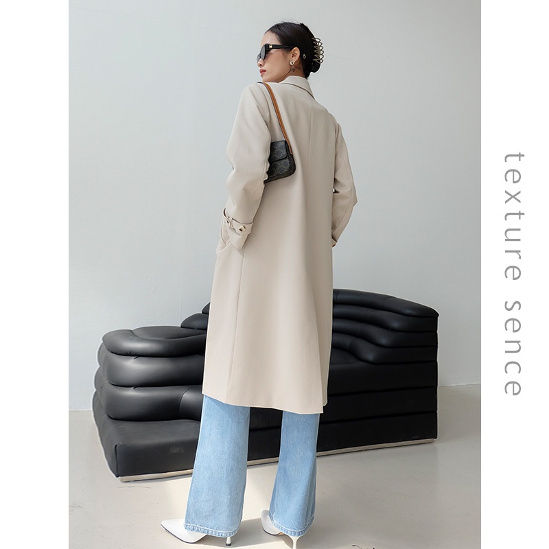 Thirteen Lines Autumn Long Sleeve Lapel Cardigan Solid Color Korean Long Style Windbreaker Women T T S901