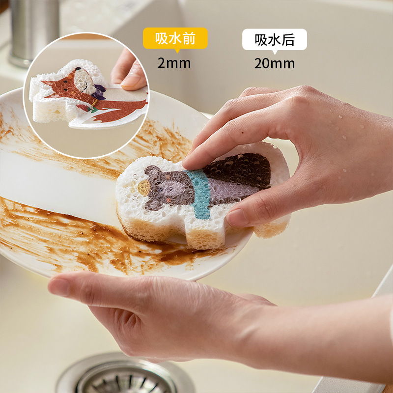 Yimijia Compressed Dishwashing Wood Pulp Cotton Kitchen Absorbent Magic Scrub Pot Sponge Brush Cartoon Scouring Pad Cleaning Brush