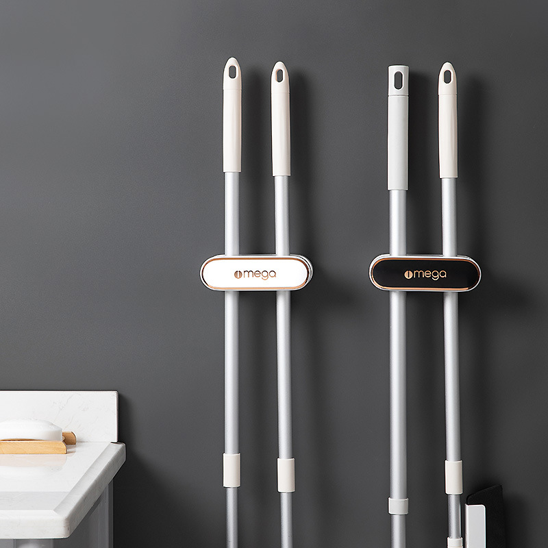 Yimijia Mop Hook Hanger No Punch Wall Mounting Kitchen Bathroom Broom Mop Clip Traceless Strong Double Head