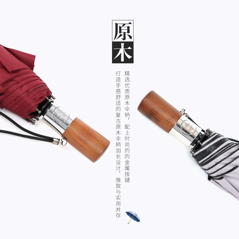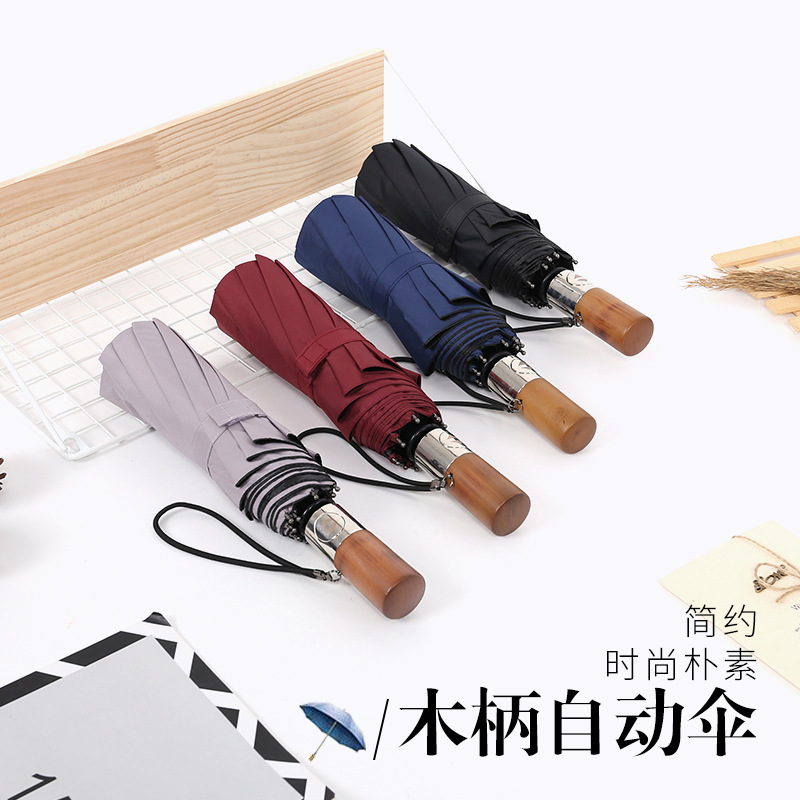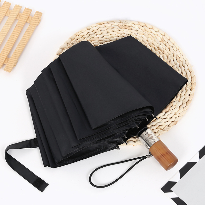 10k Vinyl Fully Automatic Folding Business Umbrella With Metal Wooden Handle Three-fold Parasol Vinyl Sunshade And Sun Protection