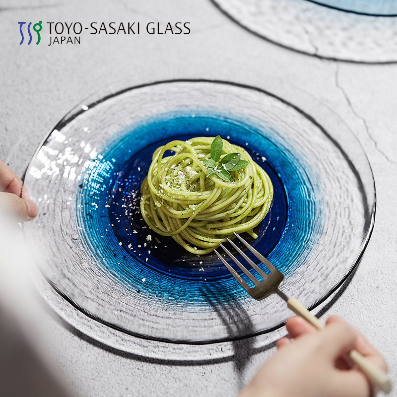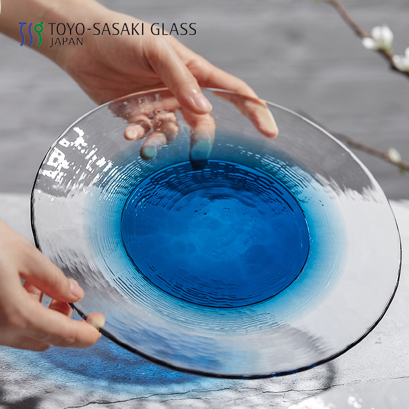 Japan Imported Oriental Sasaki Crystal Glass Dinner Plate Sea Blue Flat Plate Hammered Deep Plate Handmade Fruit Plate