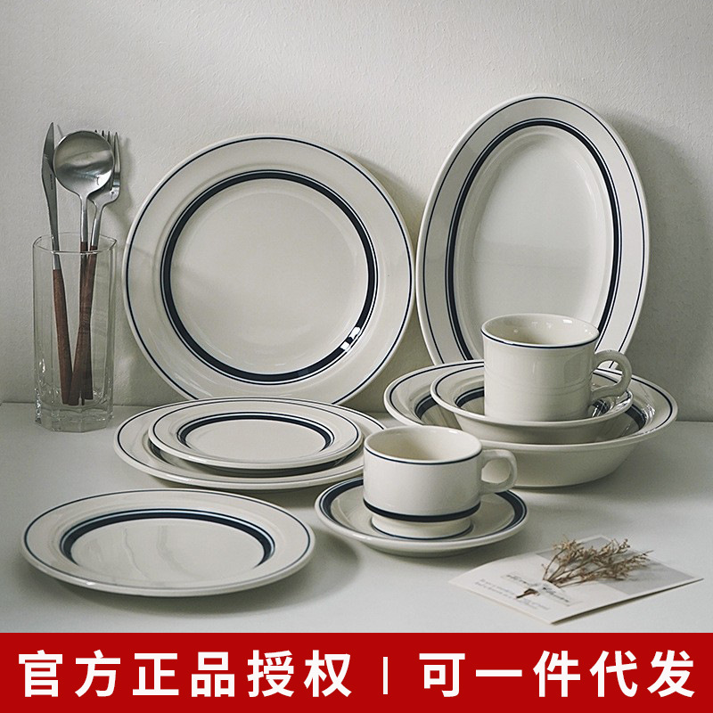 Japan Imported Mino-yaki Navy Blue Style Tableware Japanese Simple Underglaze Color Rice Bowl Soup Bowl Dish Plate