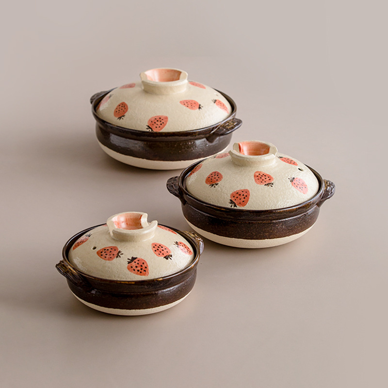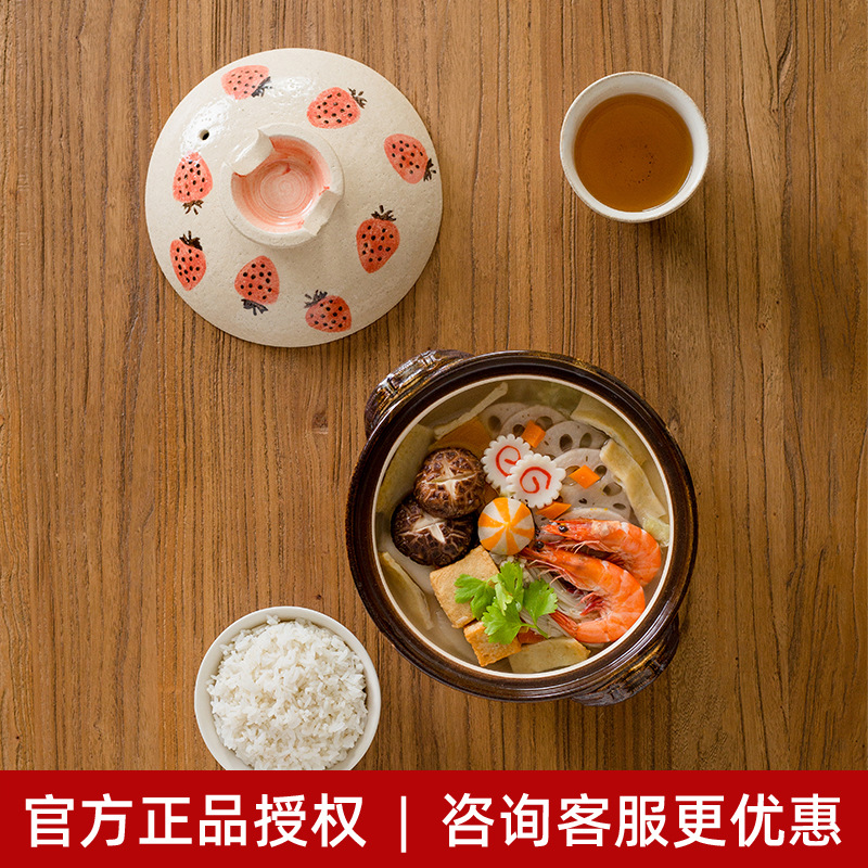 Japan Imports Eternal Burning Girl Pink Strawberry Earthen Pot Japanese Household Large Stew Pot Cute Style Ceramic Pot
